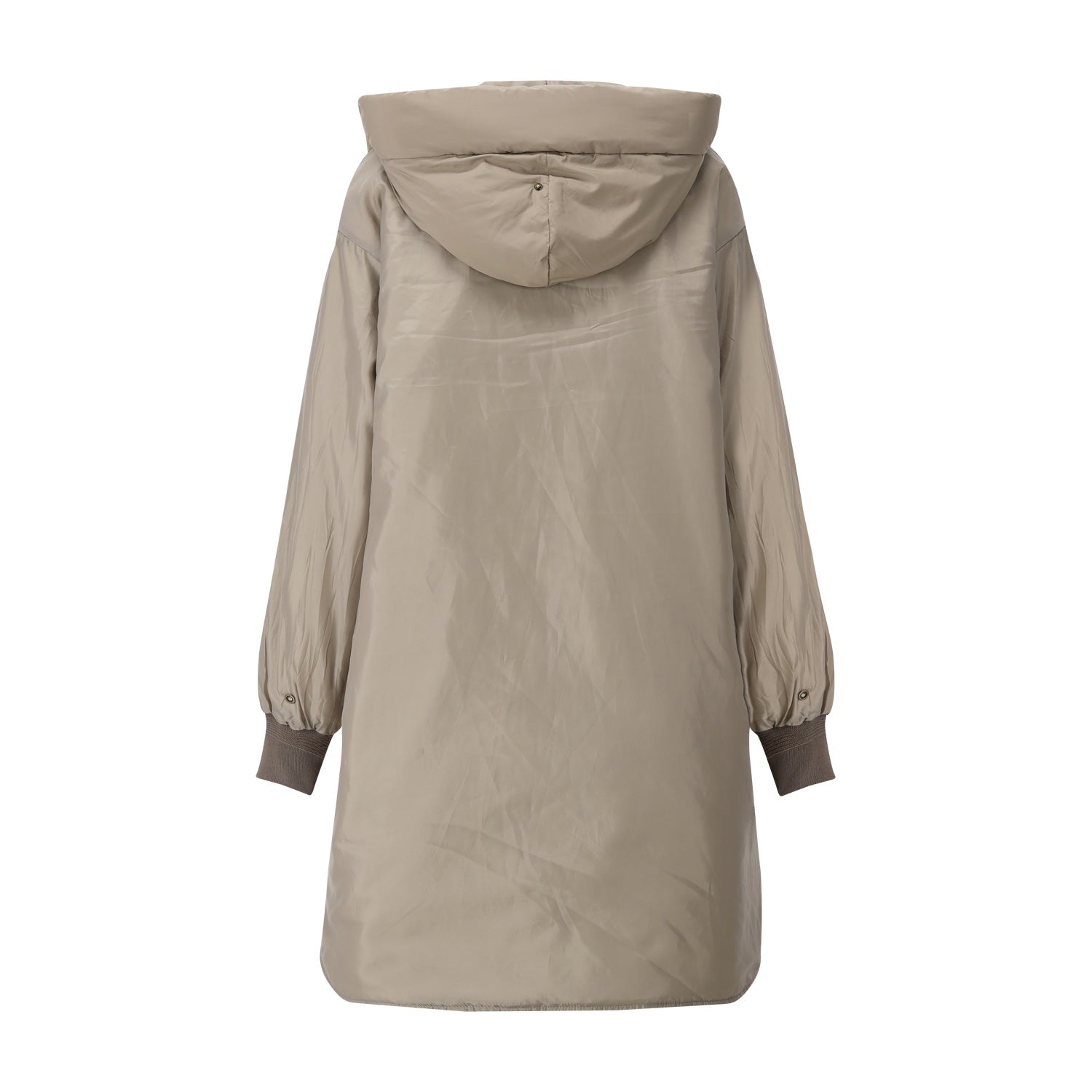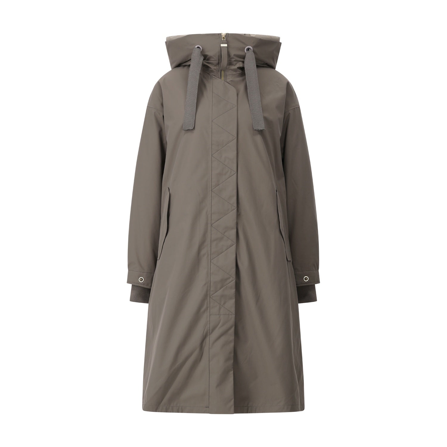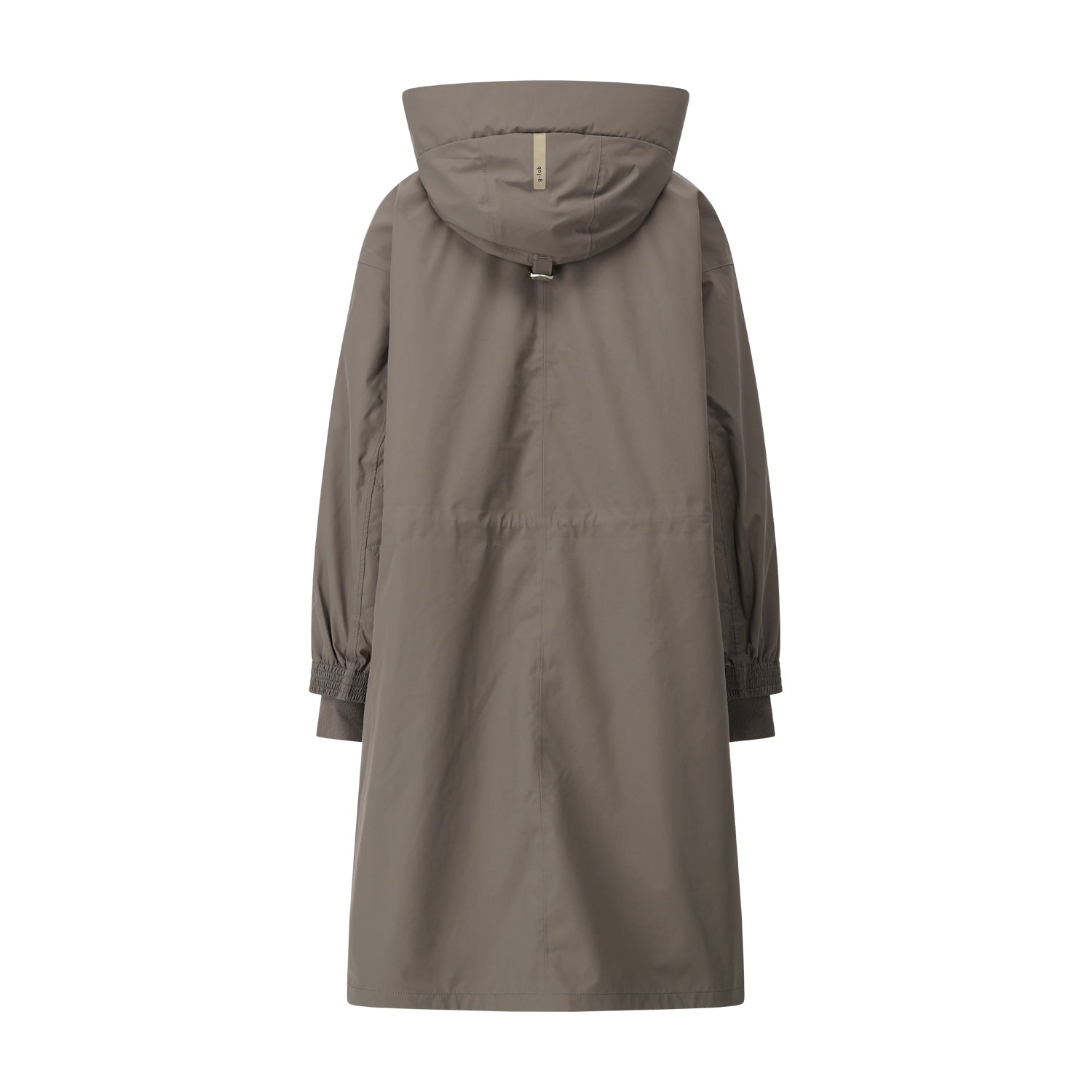 Der Allround-Mantel für jede Saison vereint zeitlose Eleganz, Wandelbarkeit und höchste Funktionalität in einem durchdachten Design. Die herausnehmbare Innenjacke mit PrimaLoft®-Wattierung macht ihn leicht im Sommer und wärmend im Winter, ideal für jede Übergangszeit. Die minimalistische, feminin interpretierte Silhouette mit abgerundetem Saum lässt sich offen in moderner A-Linie tragen oder per Kordelzug im Rücken individuell anpassen. Trotz cleanem Look überzeugt der Mantel mit wind- und wasserdichtem, atmungsaktivem Material, das angenehm soft auf der Haut liegt.