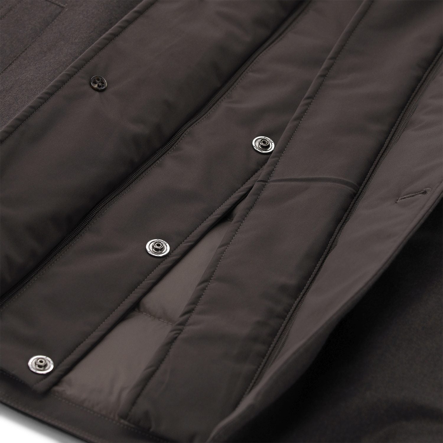 Dieser Kurzmantel aus edlem Wolle-Kaschmir-Mix vereint luxuriöse Haptik mit funktionaler Wärme. Das gesteppte Innenfutter und der herausnehmbare Einsatz mit Daunenfüllung sorgen für hohen Tragekomfort, während die italienische Fertigung für zeitlose Eleganz steht.