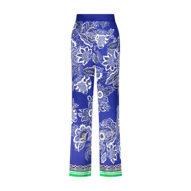 Diese Hose ist weit geschnitten und hat einen hohen, hinten elastischen Bund, der für eine optimale Passform sorgt. Ein seitlicher, verdeckter Reißverschluss bietet zusätzlichen Komfort. Die seitlichen Eingriffstaschen fügen praktische Details hinzu. Gefertigt aus hochwertiger Seide, bietet sie ein luxuriöses und luftiges Tragegefühl. Das florale Paisley-Muster verleiht ihr einen besonderen, eleganten Look. Ein stilvoller Hingucker, perfekt für einen glanzvollen Auftritt.