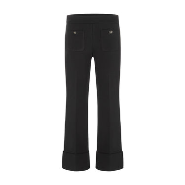 Die Flared-Stoffhose überzeugt mit einer eleganten, modernen Silhouette und hohem Tragekomfort. Gefertigt aus softem Jersey, fällt das lange Bein fließend und wird durch eine markante Biese optisch gestreckt. Praktische Zipptaschen vorn verleihen dem Design eine sportive Note, während der ausgestellte Schnitt für einen femininen, stilvollen Look sorgt – perfekt für Business und Freizeit.