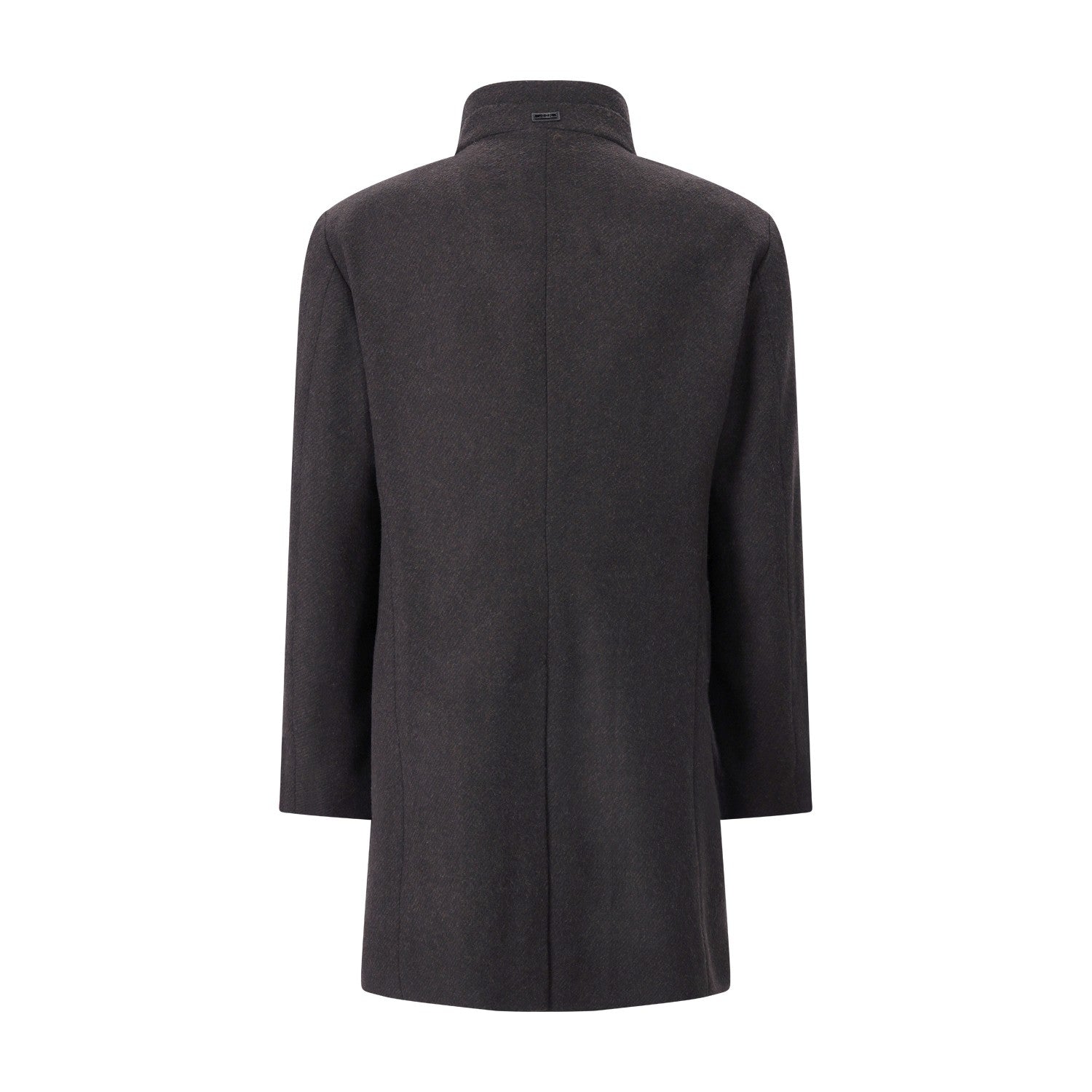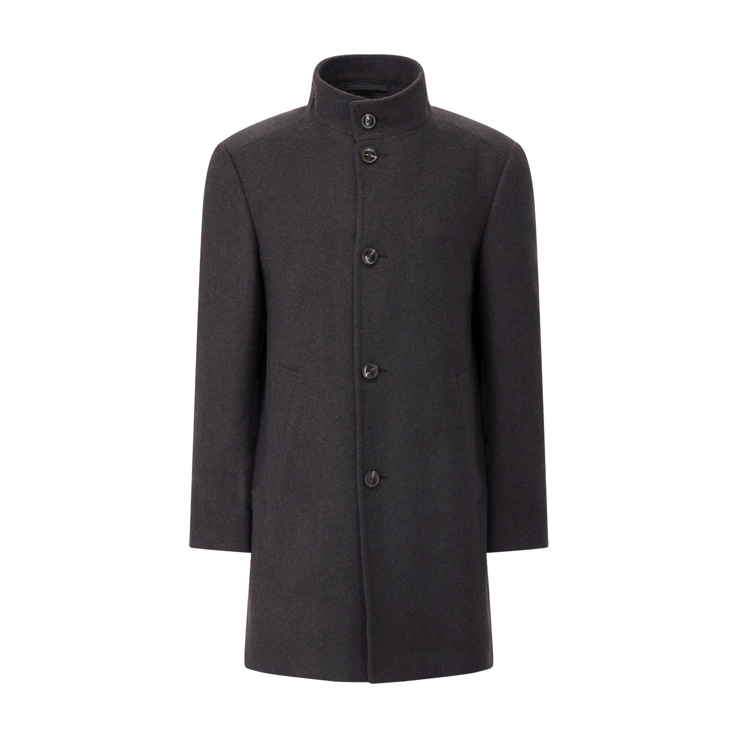 Dieser Mantel aus hochwertigem Woll-Mix vereint zeitlose Eleganz mit hochwertiger Verarbeitung. Die klassische Knopfleiste und der elegante Stehkragen verleihen dem Modell eine markante Silhouette, während das warme Material für angenehmen Tragekomfort sorgt.