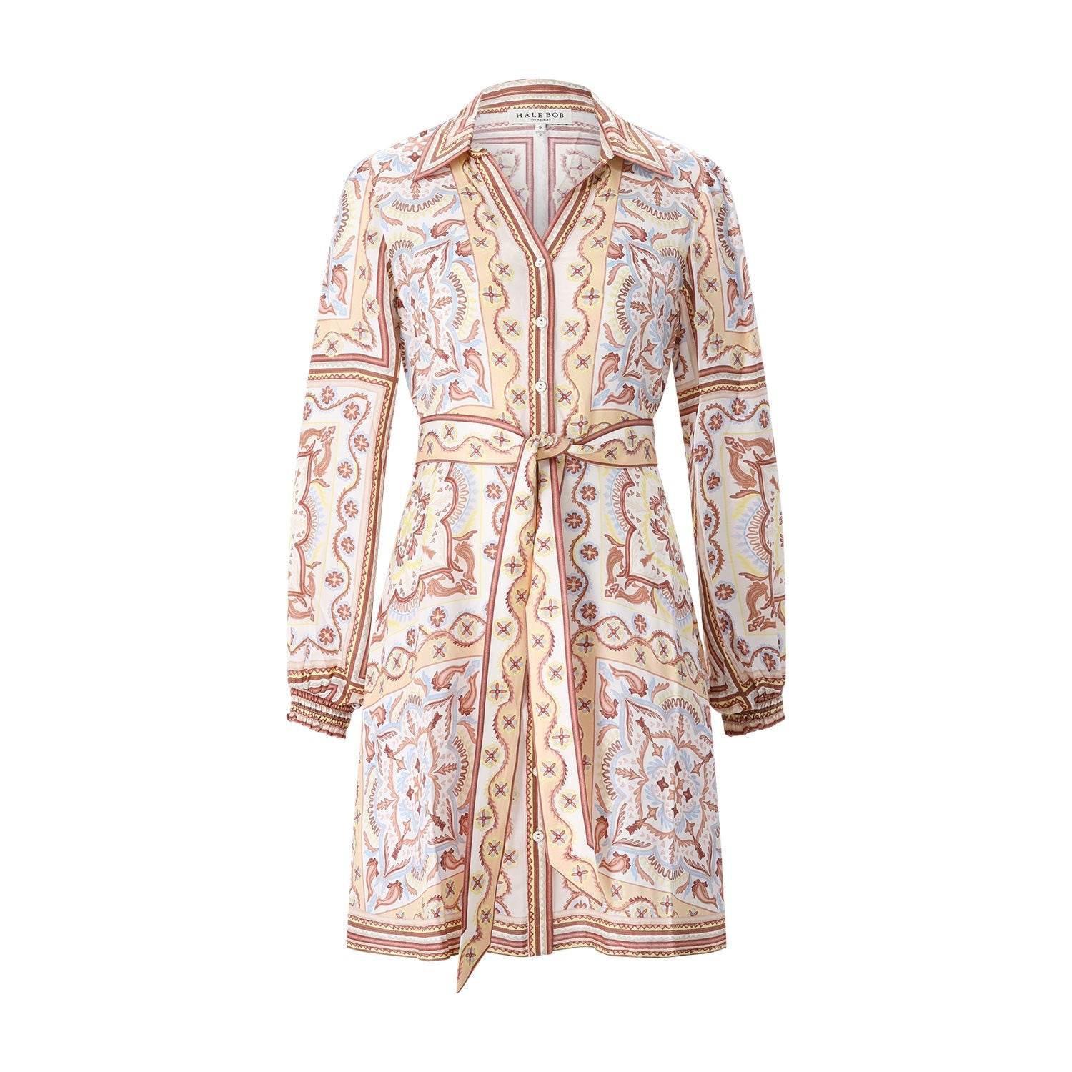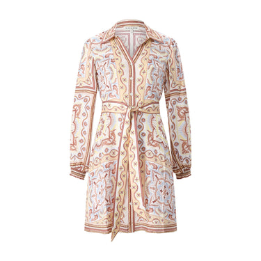 Verleihen Sie Ihrer Garderobe das gewisse Etwas mit diesem exquisiten Minikleid. Gefertigt mit einem hochwertigen Seidenanteil, besticht das Modell durch einen zarten Schimmer und ein außergewöhnlich sanftes Tragegefühl. Das besondere Muster macht das Kleid zu einem modischen Statement, während die durchgehende Knopfleiste für eine klassische Note sorgt. Dank des taillierten Schnitts und des abnehmbaren Bandes lässt sich die Silhouette ganz nach Ihren Wünschen betonen – mal verspielt auf Figur gebracht, mal entspannt und locker.