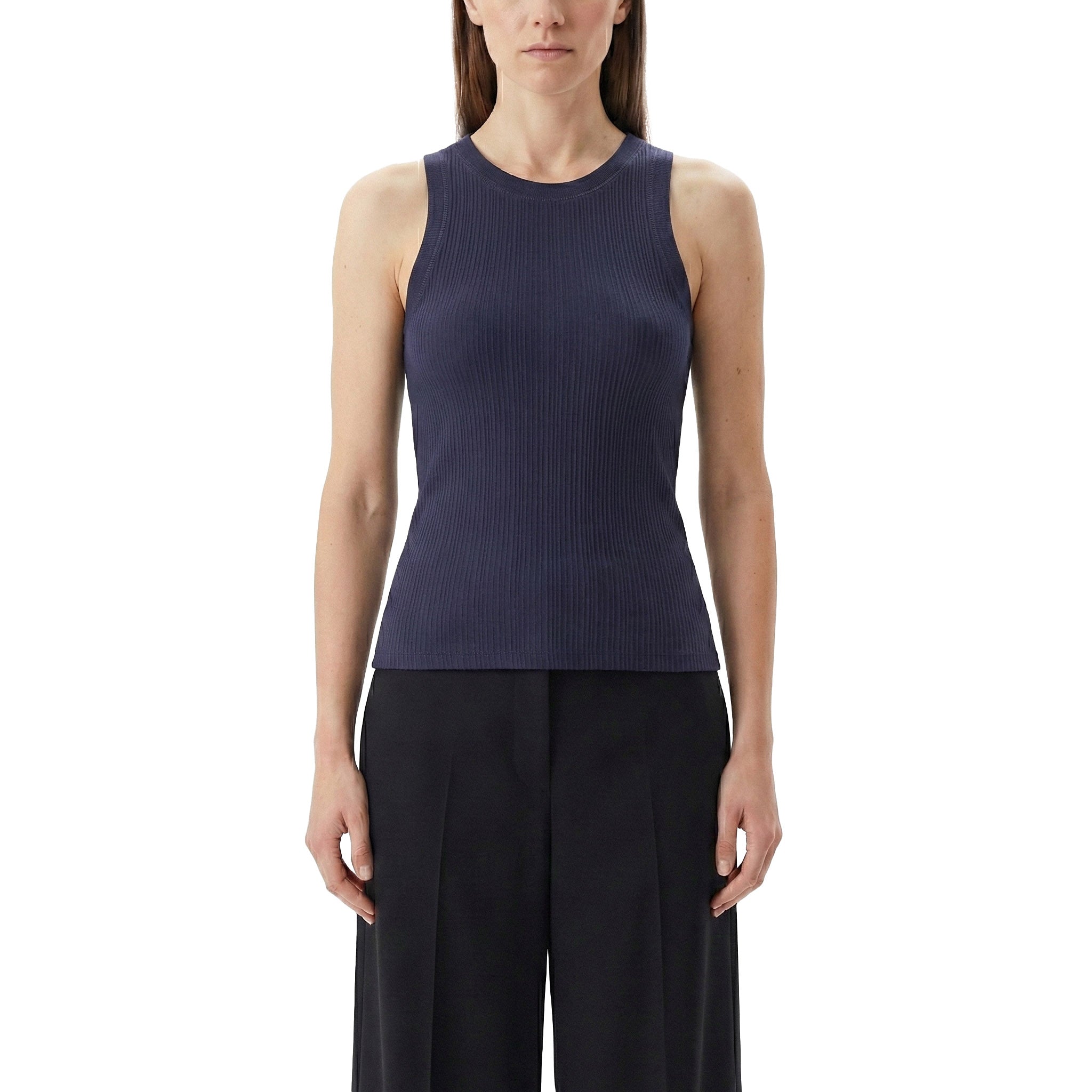 Dieses Top besticht durch seine schmale, körpernahe Passform und eine markante Ripp-Struktur. Gefertigt aus hochwertiger Bio-Baumwolle, schmiegt es sich perfekt an die Silhouette an und garantiert ein erstklassiges Tragegefühl. Das exklusive Highlight ist das dezent eingestickte Logo auf der Rückseite, das dem minimalistischen Design eine luxuriöse Identität verleiht. Ein modernes Statement-Basic, präzise gefertigt in Portugal.