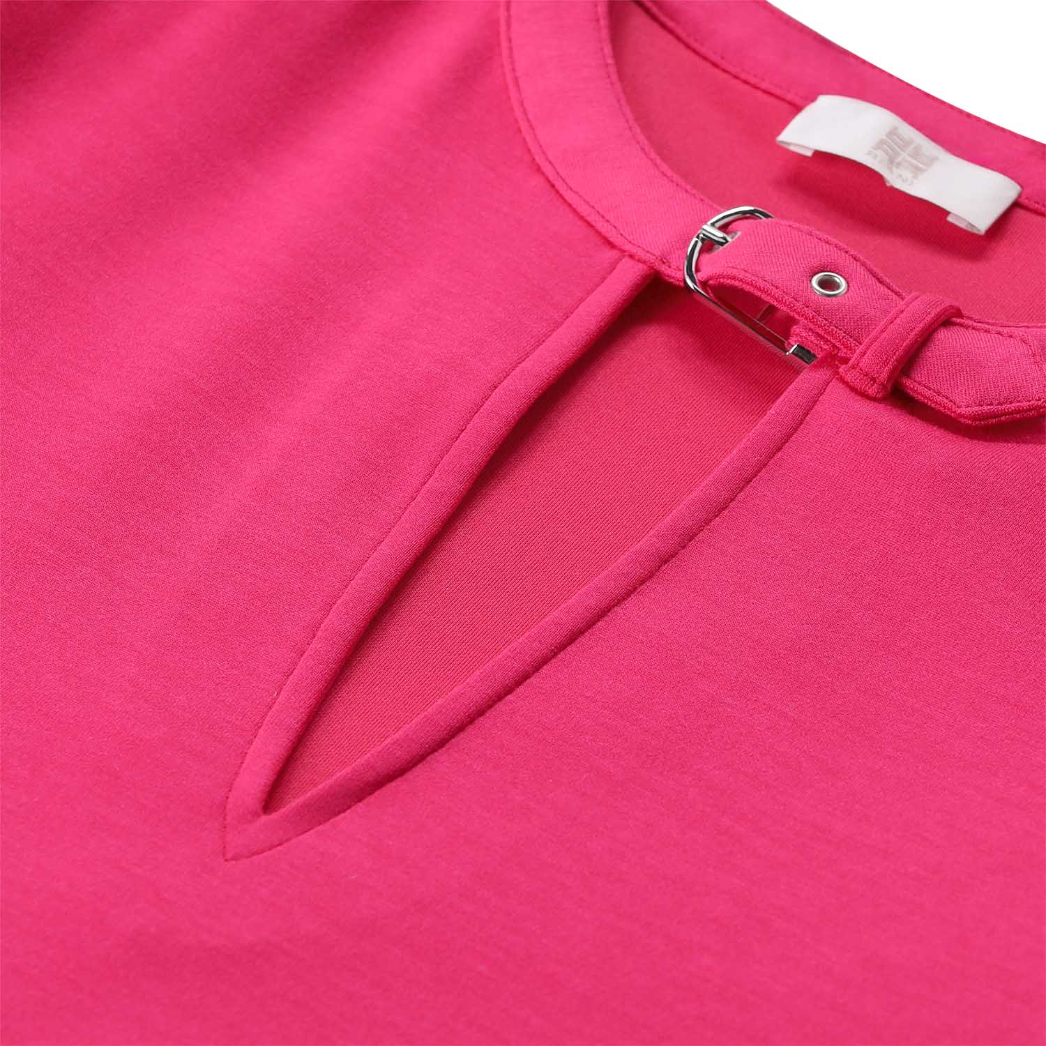 Dieses Midikleid aus softem Jersey vereint puren Komfort mit moderner Raffinesse. Der gerade Schnitt sorgt für eine cleane, zeitlose Silhouette, die Sie den ganzen Tag über stilsicher begleitet. Das modische Highlight: Der klassische Rundhalsausschnitt wird durch eine edle Schnalle akzentuiert, die dem Kleid einen hochwertigen Design-Akzent verleiht.