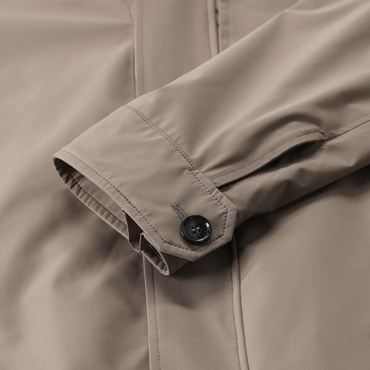 Diese Jacke ist gefertigt aus der hochleistungsfähigen Typhoon® Platinum-Faser. Sie bietet extremen Schutz vor Wind und Wasser, ohne dabei an Atmungsaktivität oder luxuriöser Haptik einzubüßen. Das herausragende Merkmal ist das abnehmbare Vorderteil, das mit einem Trichterkragen aus Rippstrick ausgestattet ist. Jedes Detail ist auf Funktionalität und Langlebigkeit ausgelegt – von der abnehmbaren Kapuze bis hin zum markanten Shark Fin Logo aus Metall. Mit seiner normalen Passform bietet der Mantel genügend Raum für komfortables Layering.