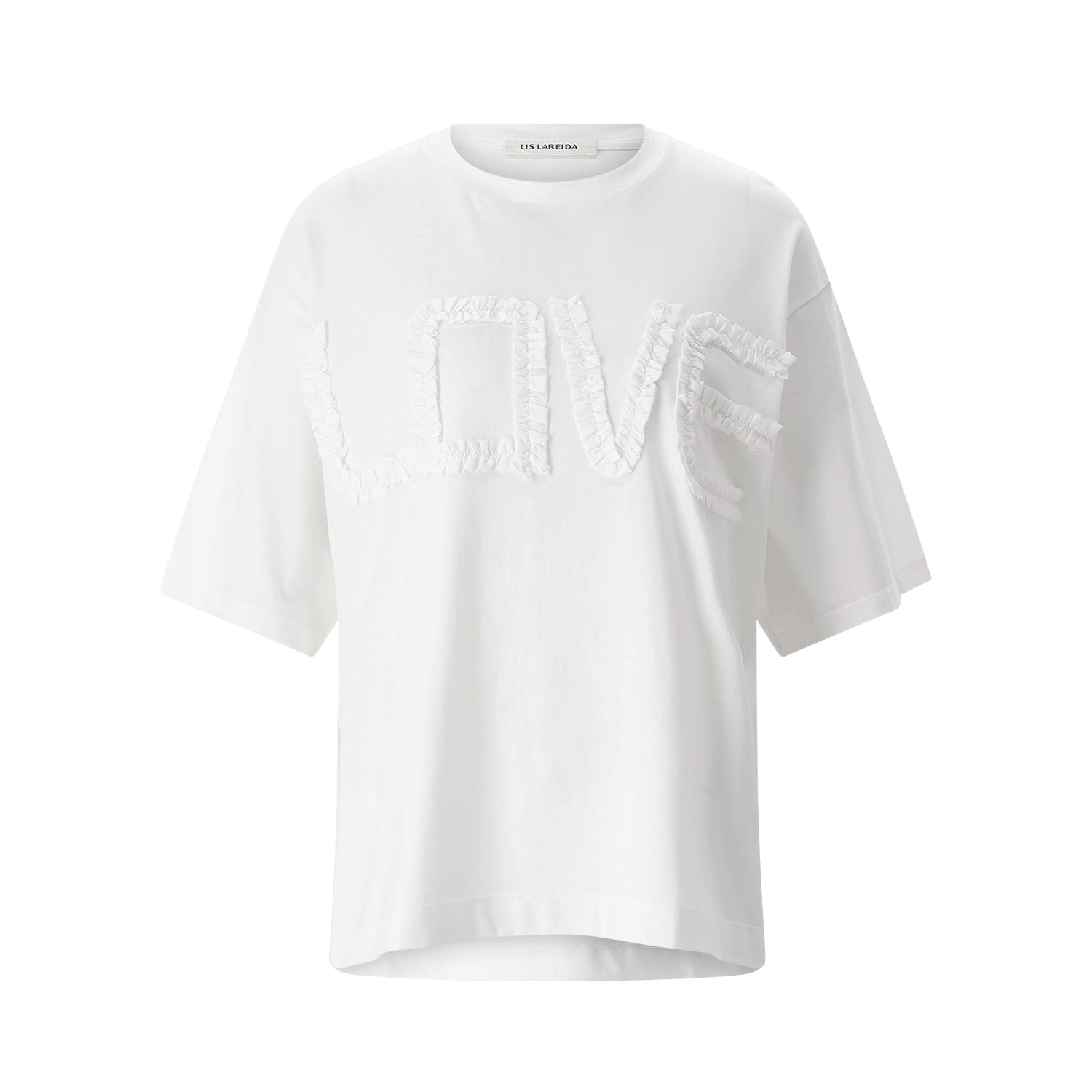 Dieses T-Shirt aus reiner Baumwolle bietet Ihnen ein besonders weiches und natürliches Tragegefühl. Das Highlight ist der gerüschte Schriftzug, der dem klassischen Rundhals-Design eine verspielte und dennoch moderne Note verleiht. Gefertigt in Portugal, steht dieses Shirt für erstklassige Qualität und eine nachhaltige Verarbeitung.
