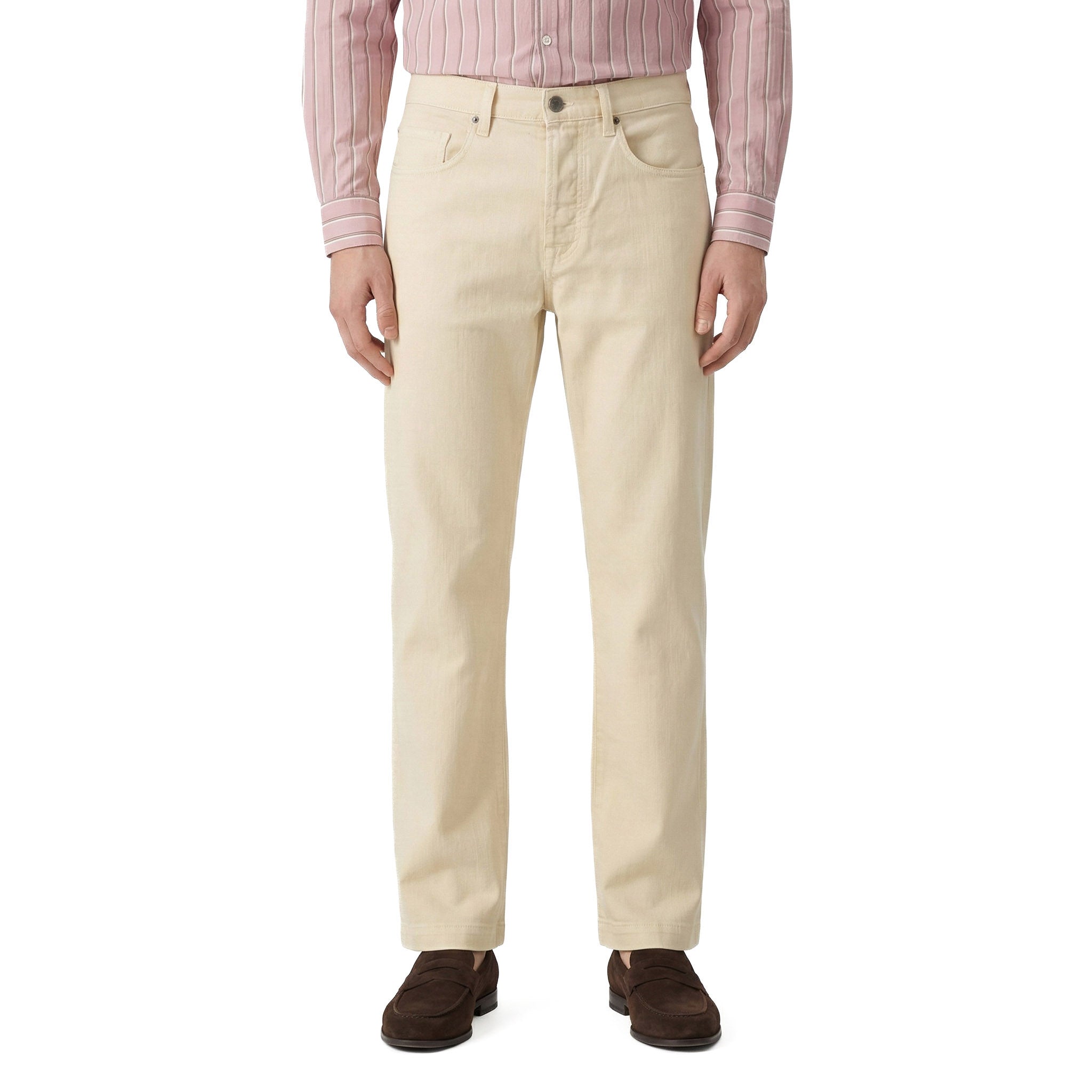 Diese Jeans vereint traditionelle Qualität mit einem modernen, geradlinigen Design. Hochwertig in Italien hergestellt, besticht sie durch ihre erstklassige Verarbeitung und ein authentisches Tragegefühl. Die klassische Regular-Fit Passform sorgt für eine souveräne Silhouette und bietet gleichzeitig optimalen Bewegungsfreiheit im Alltag. Ausgestattet mit einem robusten Knopfverschluss und dem bewährten 5-Pocket-Style, ist diese Jeans ein Essential für besondere Looks.