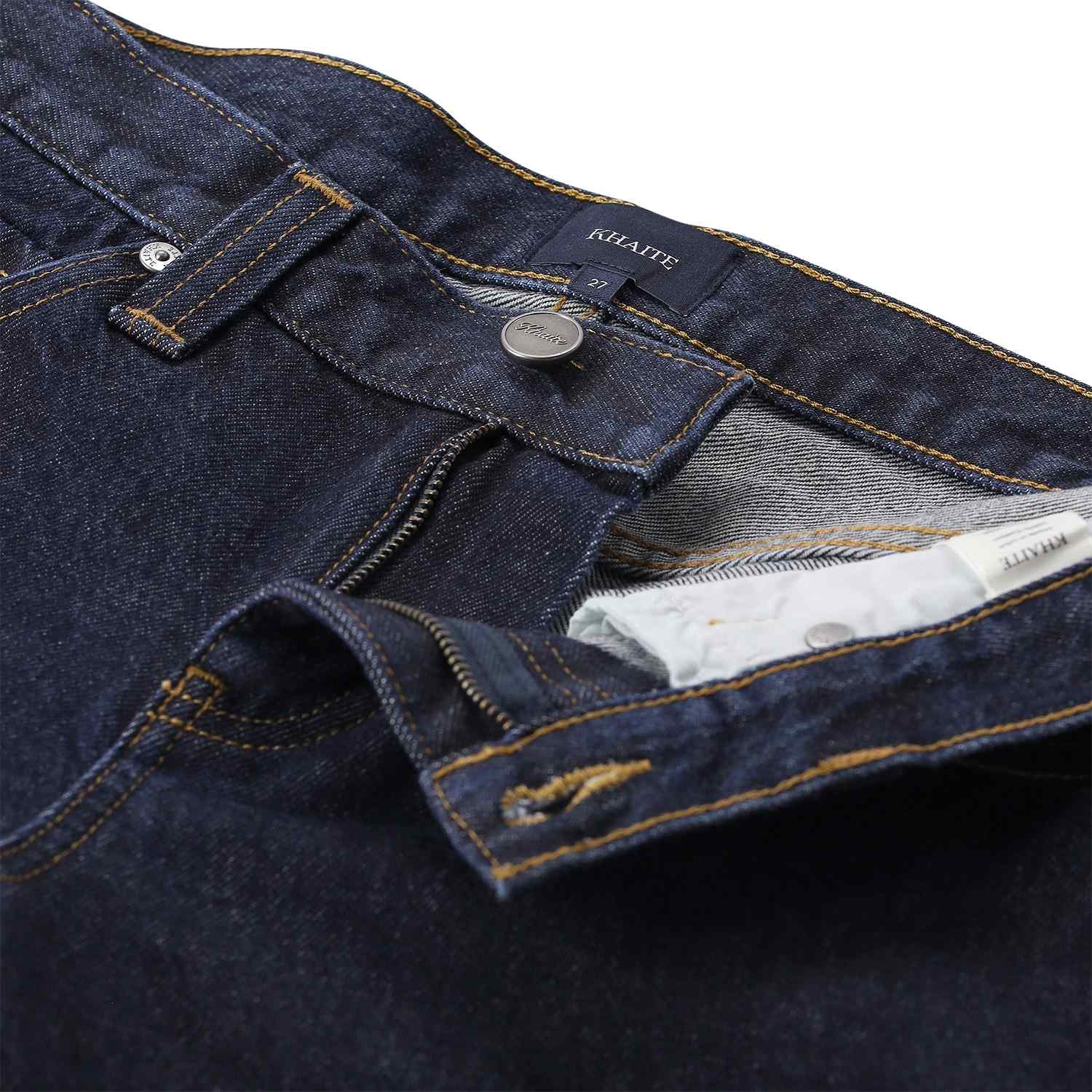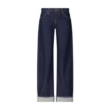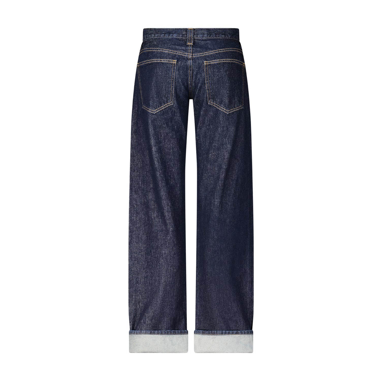 Diese lässige Low-Rise Jeans ist von der Arbeitskleidung der Mitte des 20. Jahrhunderts inspiriert und überzeugt mit einem modernen, markanten Look. Sie sitzt tief auf der Hüfte, während geschwungene Nähte eine charakteristische, leicht gebogene Silhouette formen. Umgeschlagene Säume betonen den vintageartigen Charme, und jedes handveredelte Modell wird mit einem geprägten Knopf aus antikem Nickel vollendet.