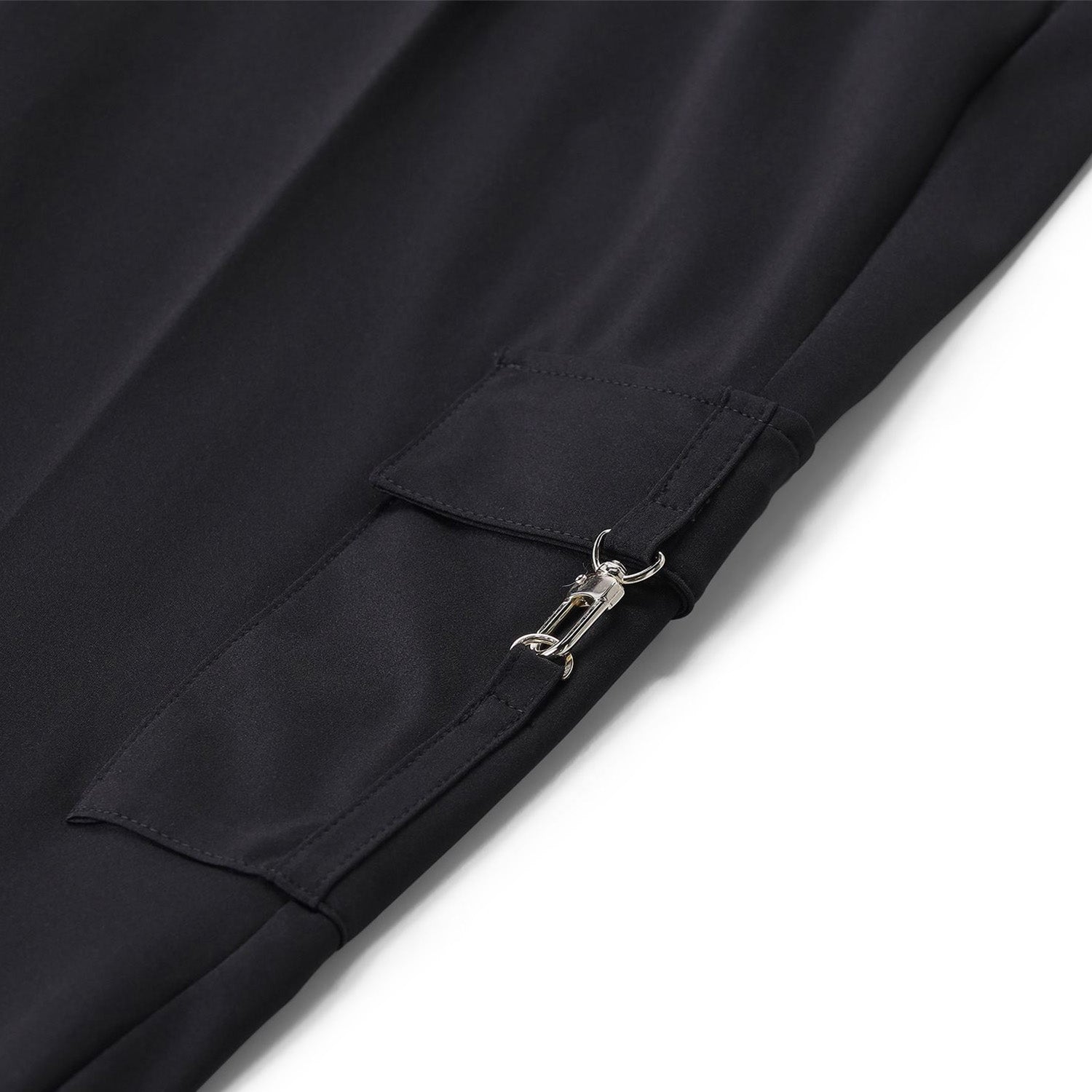 Diese Tapered-Pants aus weichem Stretch-Jersey verbinden entspannten Komfort mit markanten Designakzenten. Der elastische Bund und die dezenten Bundfalten sorgen für eine moderne, schmeichelhafte Silhouette. Zwei aufgesetzte Pattentaschen am Bein werden durch edle Karabinerhaken aus hochglänzendem Metall hervorgehoben und verleihen der Hose einen stilvollen, leicht utilitaristischen Touch.