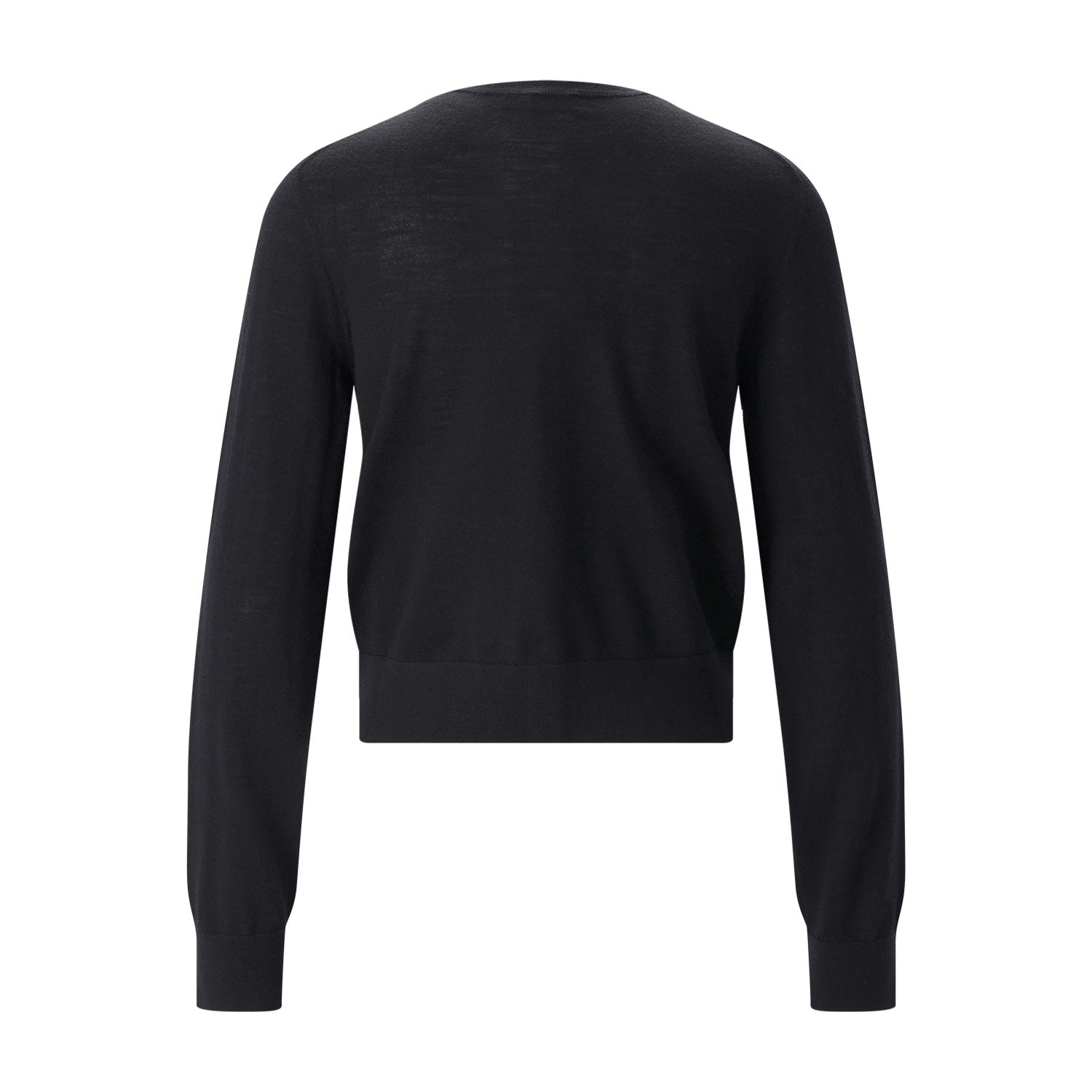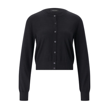 Dieser Cardigan ist aus einem federleichten Merino-Woll-Kaschmir-Mix gefertigt und bietet eine wunderbar weiche Haptik. Das Modell präsentiert sich in einer entspannten Silhouette mit einem leicht verkürzten Schnitt und einem eng anliegenden Saum. Der hohe Rundhalsausschnitt und die langen Ärmel machen ihn zum perfekten Allrounder. Edle Perlmuttknöpfe mit Logo-Gravur entlang der Knopfleiste unterstreichen die hohe Wertigkeit dieses Essentials.