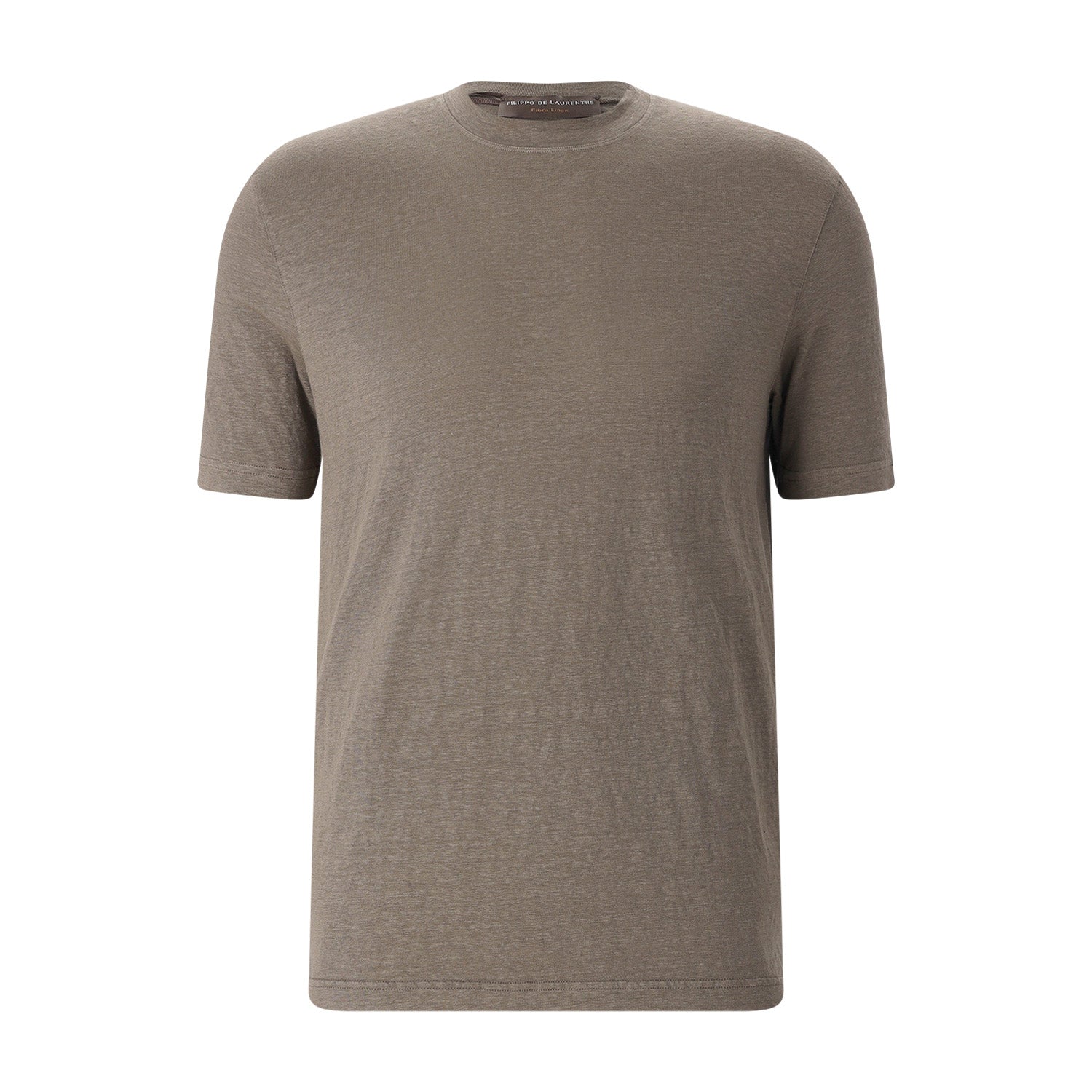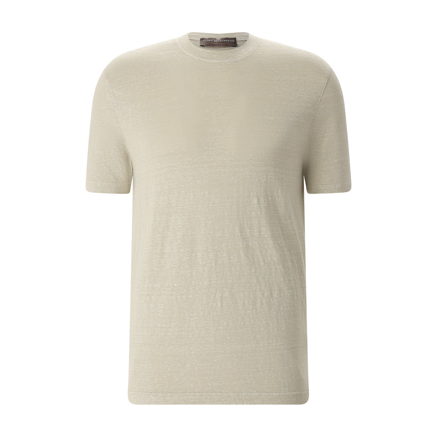 Dieses in Italien gefertigte T-Shirt besticht durch seine natürliche Textur und erstklassige Verarbeitung. Der hochwertige Leinen-Mix sorgt für eine optimale Luftzirkulation und ein angenehm kühles Tragegefühl, während der klassische Rundhalsausschnitt das zeitlose Design harmonisch abrundet.