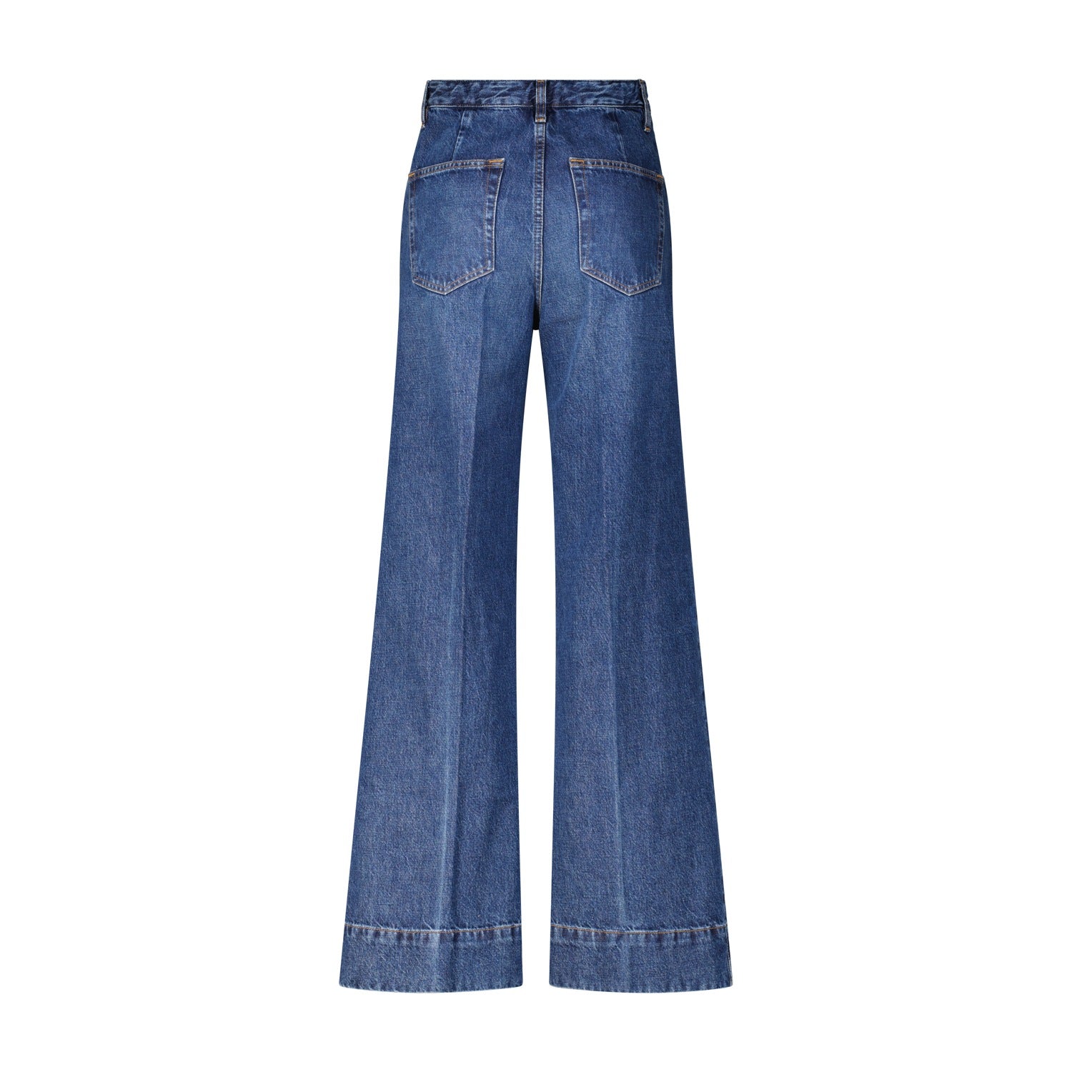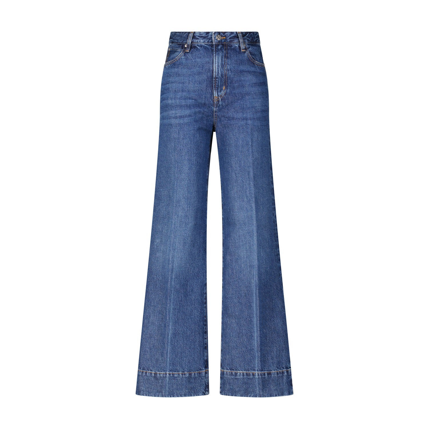 Diese Flared Jeans im trendigen High-Waist-Design begeistert mit ihrer femininen Silhouette und einem weit geschnittenen Bein, das die Figur optisch streckt. Der klassische 5-Pocket-Style und der Verschluss mit Reißverschluss und Knopf verleihen ihr einen authentischen Denim-Look.