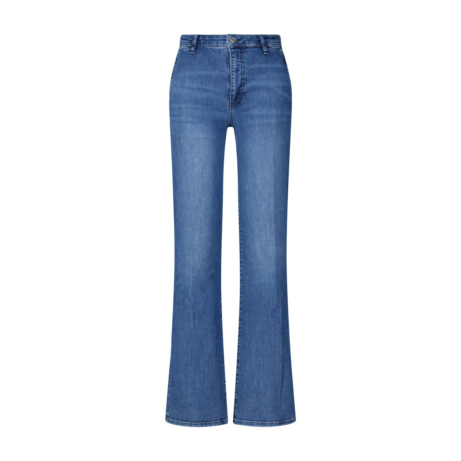 Diese Straight Leg Jeans im modernen High-Waist-Design überzeugt mit einer klaren, zeitlosen Silhouette und optimalem Tragekomfort. Der stretchige Denim sorgt für eine perfekte Passform und Bewegungsfreiheit, während Seitentaschen sowie Reißverschluss und Knopf den klassischen Look abrunden.