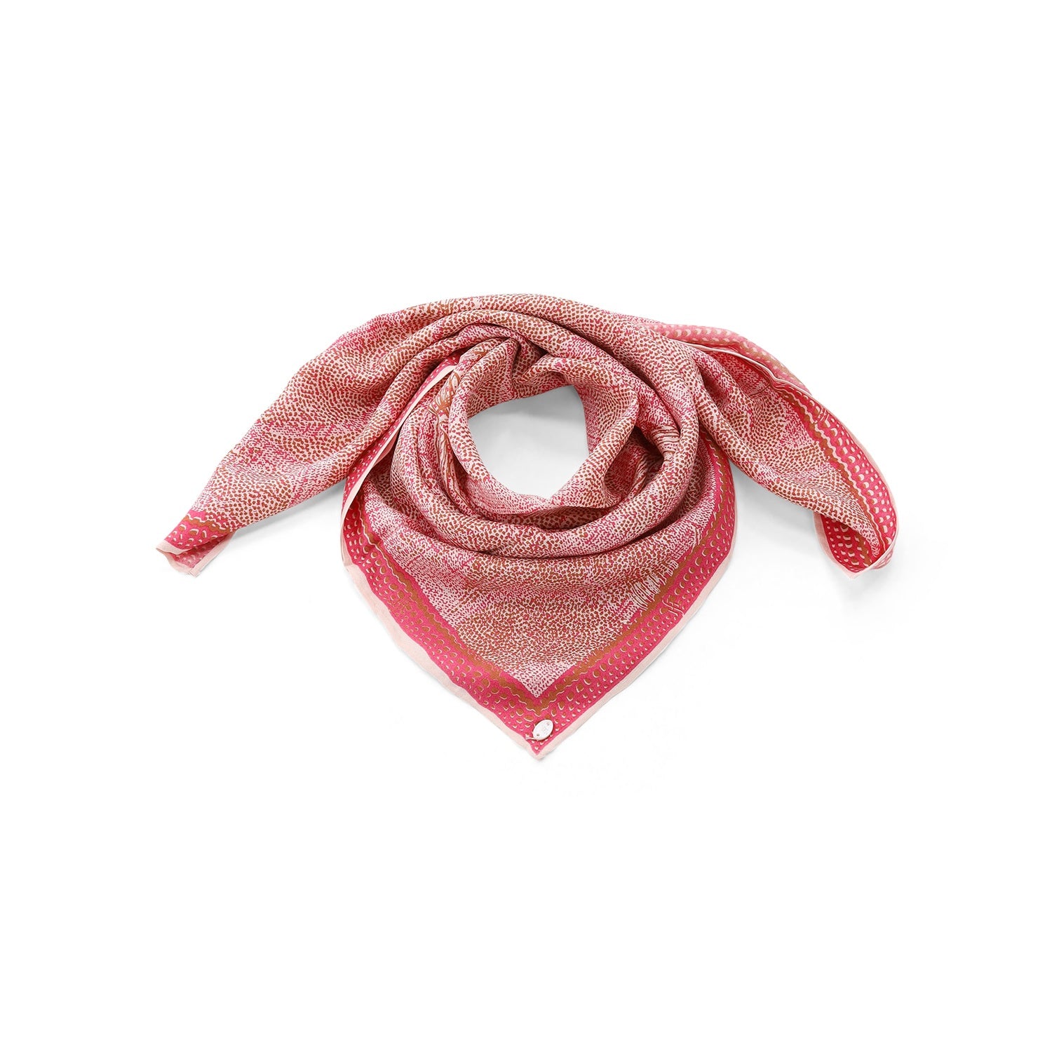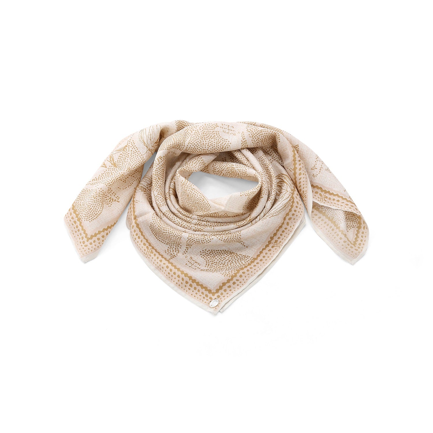 Dieses exklusive Tuch aus reiner Seide ist ein vielseitiges Accessoire, das jedem Outfit eine luxuriöse Note verleiht. Das raffinierte Design kombiniert ein klassisches Punktemuster mit einem Blumenprint und schafft so eine harmonische Verbindung aus Tradition und Moderne. Dank der Form lässt es sich auf vielfältige Weise binden – ob elegant um den Hals, als Akzent an Ihrer Tasche oder als stilvolles Haar-Accessoire. Die fließende Qualität der Seide sorgt für einen sanften Schimmer und ein unvergleichlich zartes Gefühl auf der Haut.