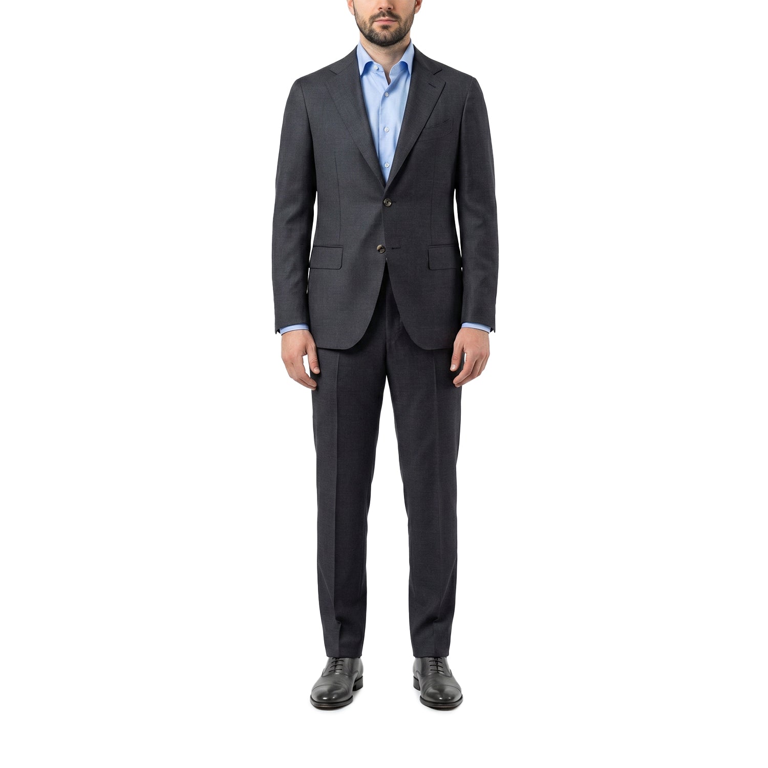 Dieser elegante, zweiteilige Anzug aus hochwertiger Wolle wird in Italien gefertigt und besticht durch seine exzellente Verarbeitung. Der figurbetonte Schnitt bringt eine moderne, maskuline Silhouette perfekt zur Geltung und bietet zugleich höchsten Tragekomfort – ideal für einen stilvollen Auftritt bei Business-Terminen oder festlichen Anlässen.