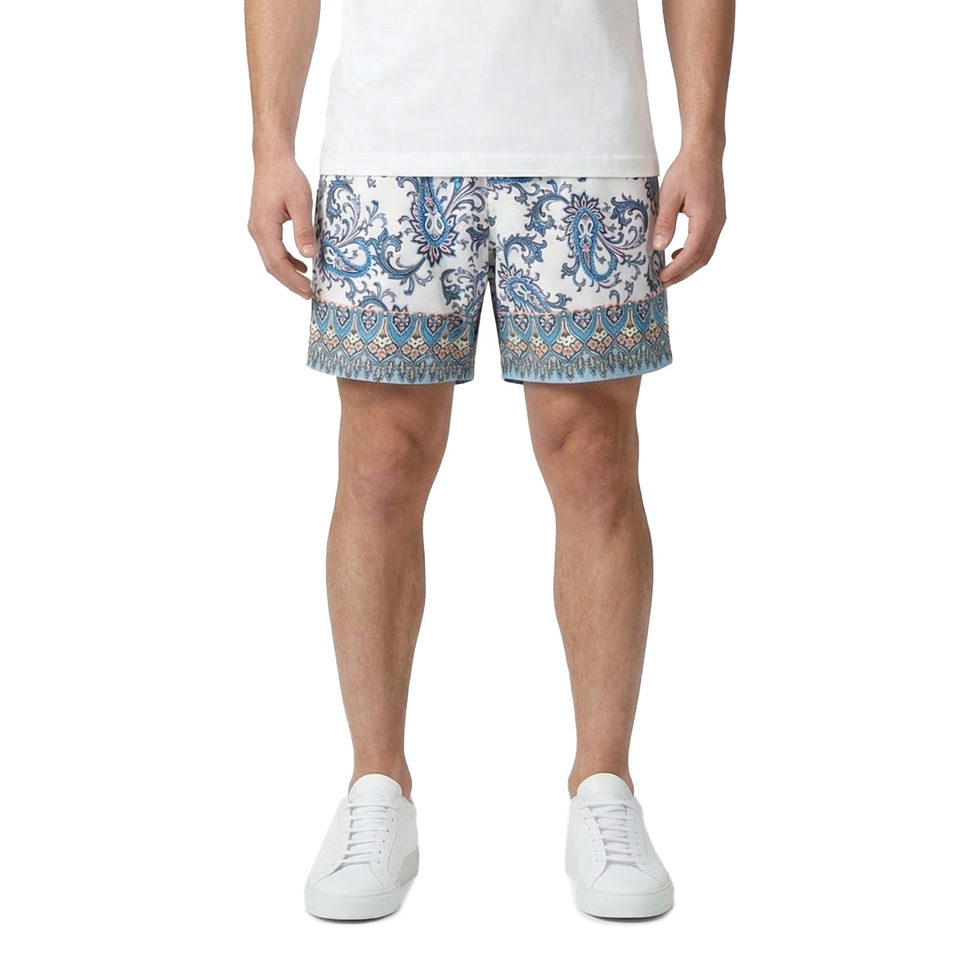 Setzen Sie am Strand oder Pool ein modisches Statement mit dieser exklusiven Badehose, die Made in Italy gefertigt wurde. Das raffinierte Paisley-Muster verleiht ihr eine luxuriöse, sommerliche Note. Für höchsten Tragekomfort und eine perfekte Passform sorgen der elastische Bund mit Kordelzug. Praktische Seitentaschen runden das Design ab.