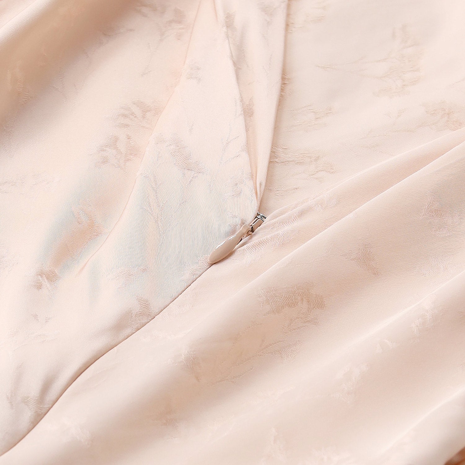 Dieses exklusive Maxikleid ist aus einem federleichten Seiden-Baumwoll-Jersey gefertigt. Es besticht durch einen dezenten, sinnlichen Schimmer und eine zarte Transparenz. Die feminine Silhouette wird durch einen klassischen Rundhals-Ausschnitt und eine akzentuierte Taillenpartie betont, während praktische Seitentaschen für eine entspannte Attitüde sorgen.