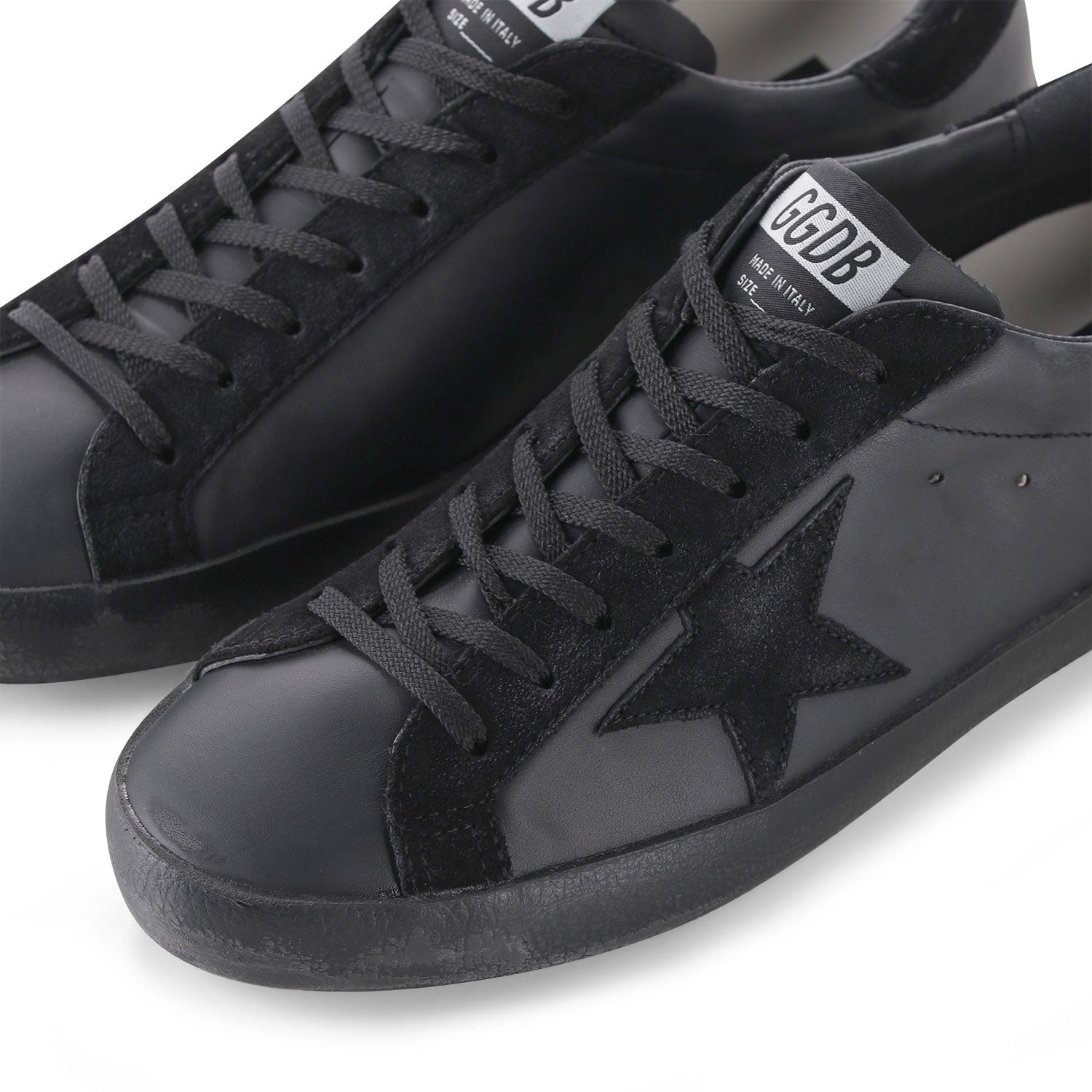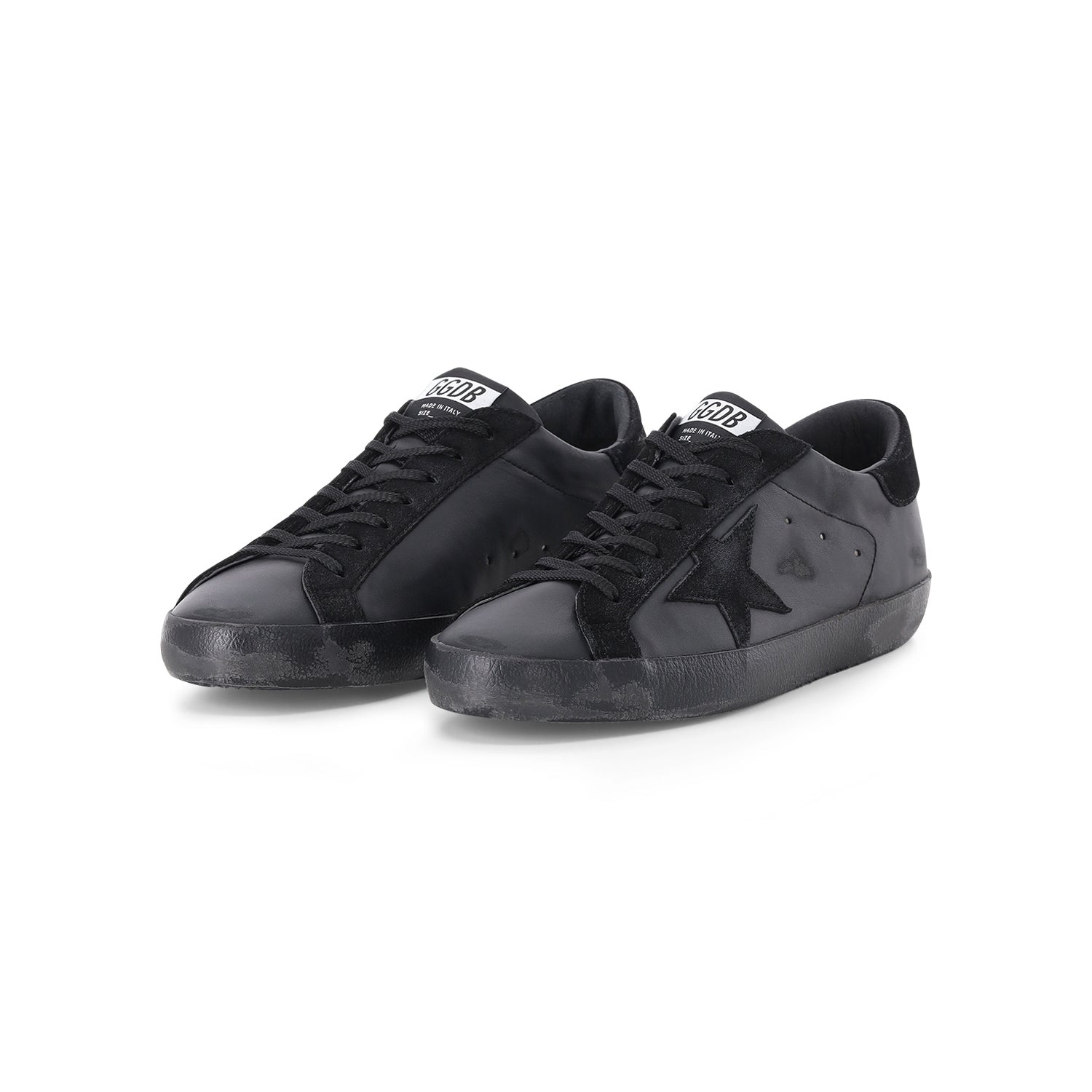 Ein Klassiker, der die Dunkelheit feiert: Dieser Super-Star ist die ultimative Interpretation zeitloser Coolness. In einem radikalen Total-Black-Look gehalten, spielt dieses Modell meisterhaft mit verschiedenen Texturen. Der Schaft aus butterweichem Nappaleder trifft auf markante Einsätze sowie den ikonischen Stern aus tiefschwarzem Rauleder. Das für die Brand charakteristische Vintage-Finish verleiht dem tiefen Schwarz eine lebendige Tiefe und beweist, dass Handarbeit aus Italien auch in der radikalsten Farbwahl ihre volle Raffinesse entfaltet.