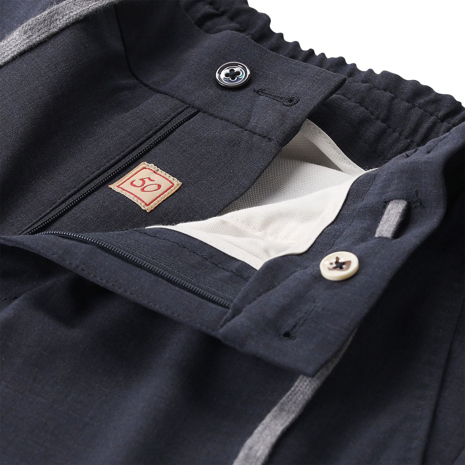 Diese Stoffhose definiert den modernen Business-Casual-Look neu. Gefertigt in Italien aus besonders leichter Schurwolle, bietet sie ein luxuriöses Tragegefühl und ist dabei angenehm atmungsaktiv. Die normale Passform garantiert eine zeitlose Silhouette, während der elastische Bund mit Kordelzug ein Höchstmaß an Flexibilität ermöglicht. Trotz des entspannten Komforts bewahrt die Hose durch den klassischen Verschluss mit Reißverschluss und Knopf sowie die praktischen Seitentaschen ihre elegante Optik.