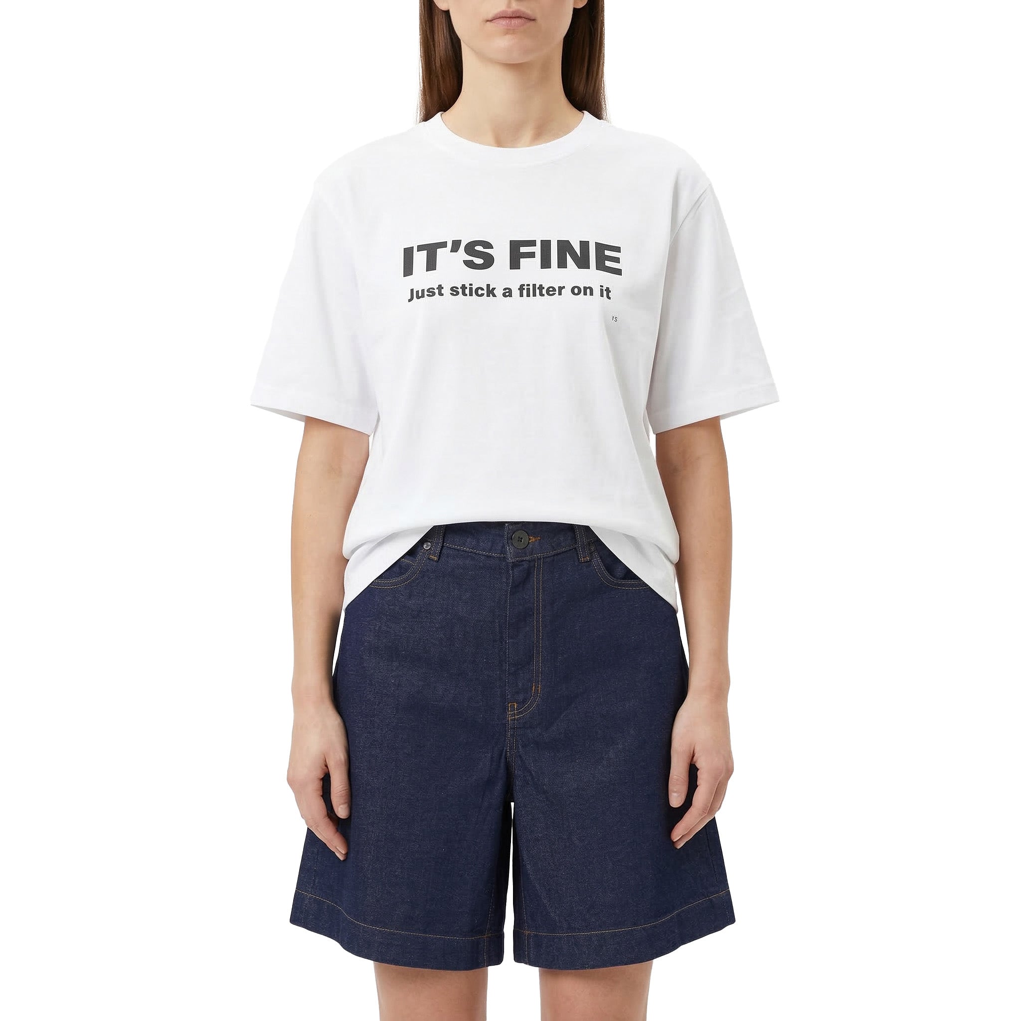 Verleihen Sie Ihrer Casual-Garderobe ein High-Fashion-Upgrade mit diesem T-Shirt. Gefertigt aus hochwertiger Bio-Baumwolle, besticht es durch ein besonders weiches Tragegefühl und eine erstklassige, nachhaltige Qualität. Das schlichte Design mit klassischem Rundhals-Ausschnitt dient als perfekte Leinwand für den exklusiven Print, der die moderne und cleane Ästhetik der Designerin widerspiegelt.