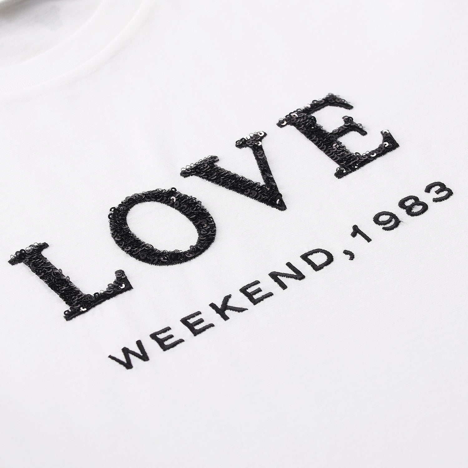 Dieses T-Shirt aus weicher, hochwertiger Baumwolle ist die ideale Wahl für Frauen, die Komfort lieben, aber nicht auf Details verzichten wollen. Das absolute Highlight ist der kunstvolle Schriftzug aus funkelnden Pailletten, der bei jeder Bewegung das Licht einfängt und für einen modischen Blickfang sorgt.