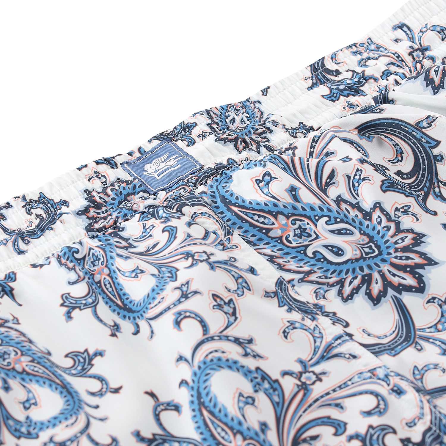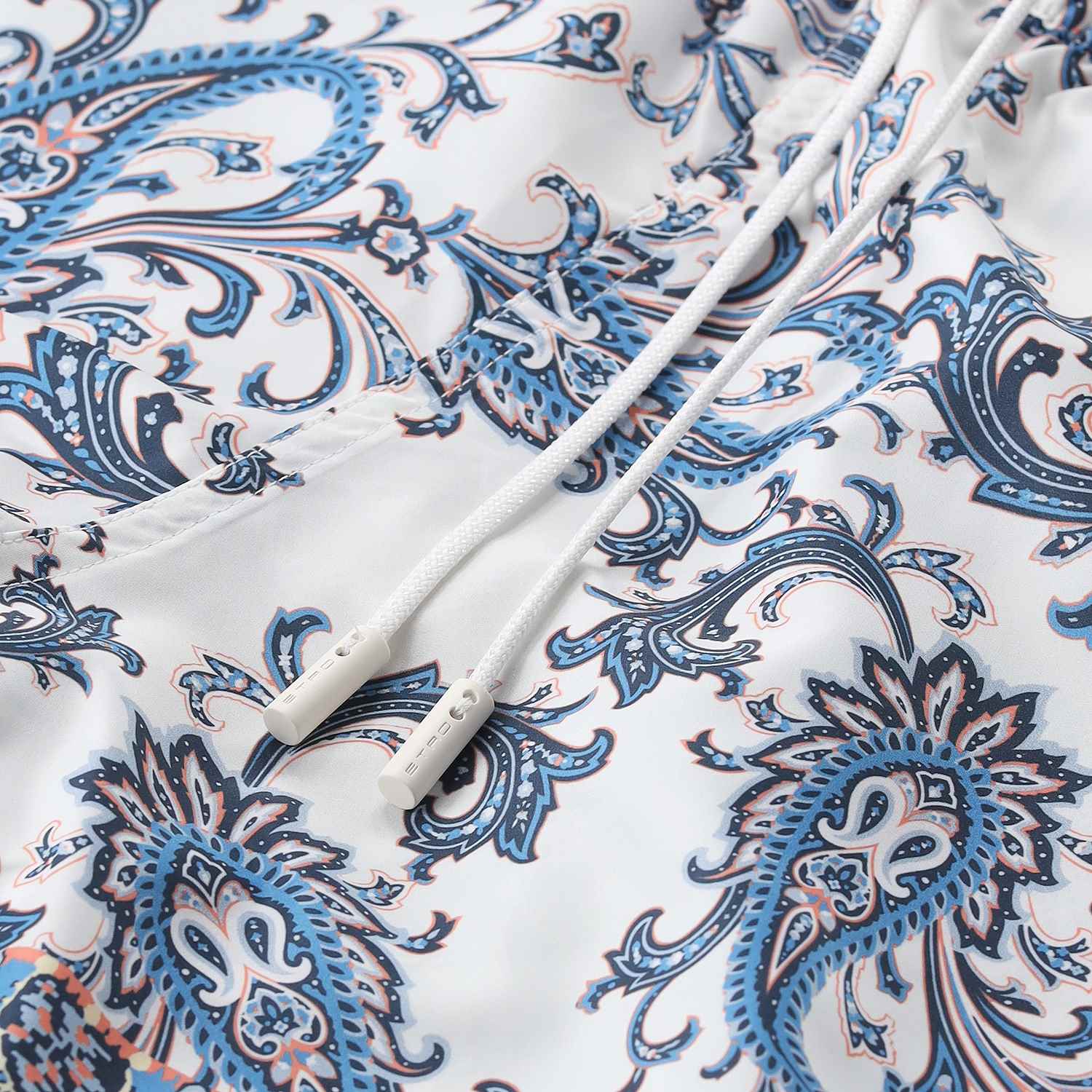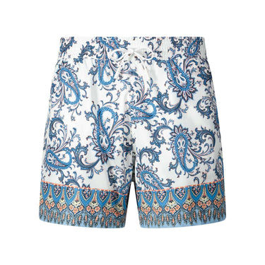 Setzen Sie am Strand oder Pool ein modisches Statement mit dieser exklusiven Badehose, die Made in Italy gefertigt wurde. Das raffinierte Paisley-Muster verleiht ihr eine luxuriöse, sommerliche Note. Für höchsten Tragekomfort und eine perfekte Passform sorgen der elastische Bund mit Kordelzug. Praktische Seitentaschen runden das Design ab.