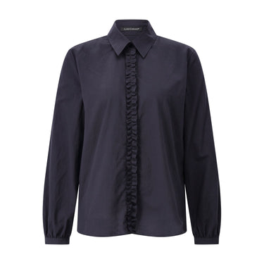 This loosely cut blouse in lightweight cotton voile combines airy comfort with feminine details. The full button placket is adorned with delicate ruffles, while buttoned cuffs and a rounded hem stylishly complete the classic look.