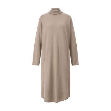 This midi-length roll-neck dress combines timeless elegance with exceptional comfort. Crafted from a luxurious blend of cashmere and cotton, it impresses with its soft feel and comfortable regular fit. The rounded hem adds a modern touch, making this dress a stylish all-rounder for many occasions.