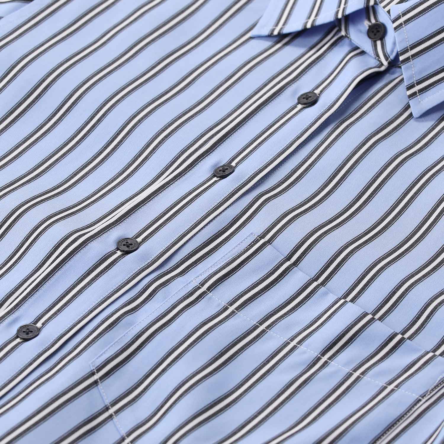 Diese gestreifte Hemdbluse verbindet klassische Elemente mit einem modernen, kürzeren Schnitt. Gefertigt in Portugal, überzeugt sie durch hochwertige Verarbeitung und liebevolle Details wie den präzisen Kragen und eine aufgesetzte Brusttasche. Die verkürzte Silhouette verleiht dem zeitlosen Streifen-Look eine frische, dynamische Note.
