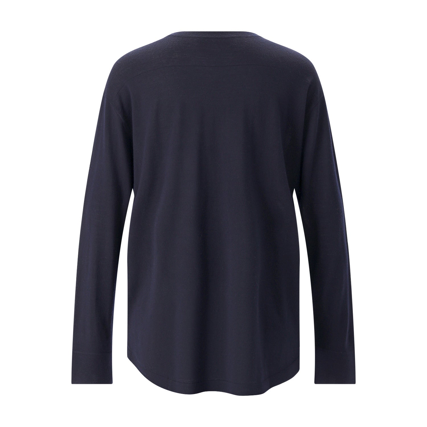Genießen Sie den unvergleichlichen Tragekomfort dieses Pullovers aus feinster Merinowolle. Das Material ist bekannt für seine Temperaturregulierung und seinen leichten Stoff, der ein angenehmes Gefühl auf der Haut garantiert, ohne aufzutragen. Die lockere Passform sorgt für eine entspannte, moderne Silhouette. Veredelt wird das Design durch eine dezente Logo-Stickerei, die auf subtile Weise die Hochwertigkeit und Markenqualität hervorhebt.