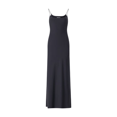 Dieses schwarze Trägerkleid ist ein Statement puristischer Ästhetik. Der figurbetonte Schnitt setzt Ihre Silhouette perfekt in Szene, während die feinen Träger für eine feminine Note sorgen. Die Kennzeichnung am Rücken unterstreicht den exklusiven Designer-Charakter dieses Modells.