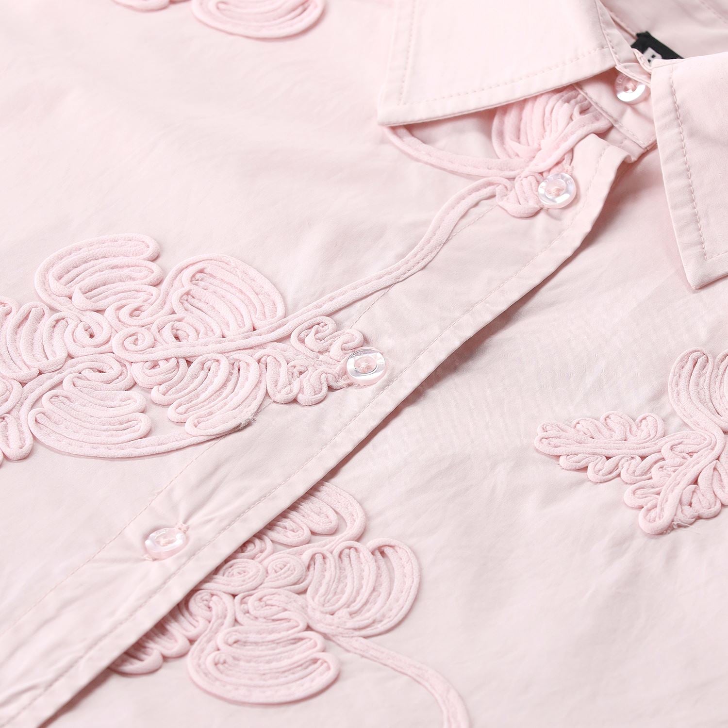 Diese Hemdbluse ist ein traumhaftes Statement-Piece! Gefertigt aus reiner, angenehmer Baumwolle, bietet sie höchsten Tragekomfort und eine luftige Haptik. Der oversized Schnitt und die weiten Ärmel sorgen für eine moderne, fließende Silhouette. Besonderes Highlight sind die liebevollen Blumen-Applikationen, die dem klassischen Hemd-Design einen femininen und romantischen Touch verleihen.