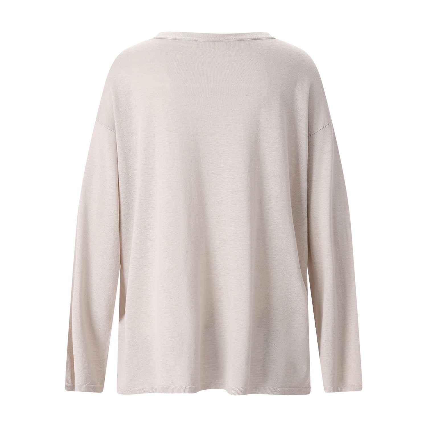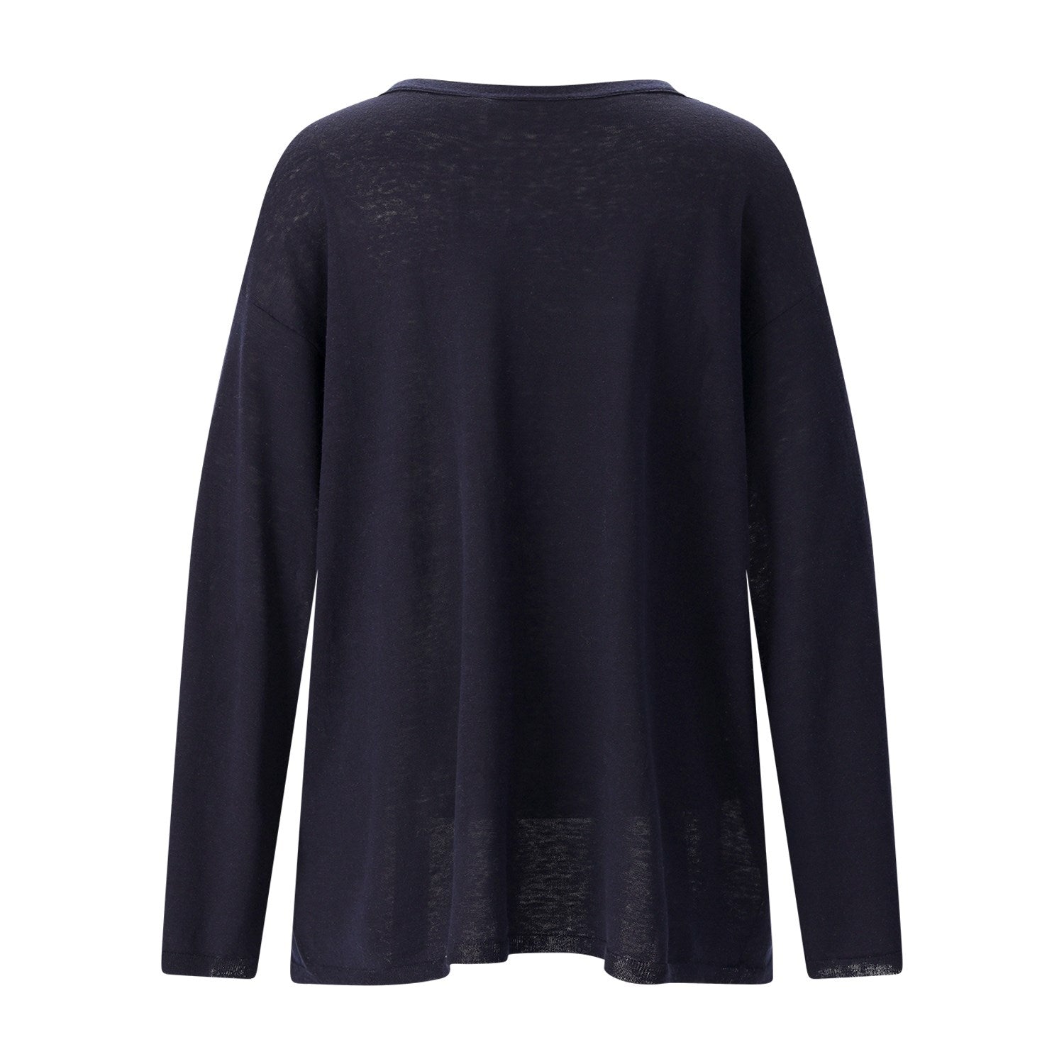 Dieser leichte Longsleeve kombiniert die besten Eigenschaften von zwei Naturfasern: die glatte Eleganz der Seide und die kühlende Haptik des Leinens. Die resultierende Textur ist atmungsaktiv und besonders angenehm zu tragen. Dank der lockeren Passform fällt das Shirt fließend und bietet eine entspannte, stilvolle Silhouette.