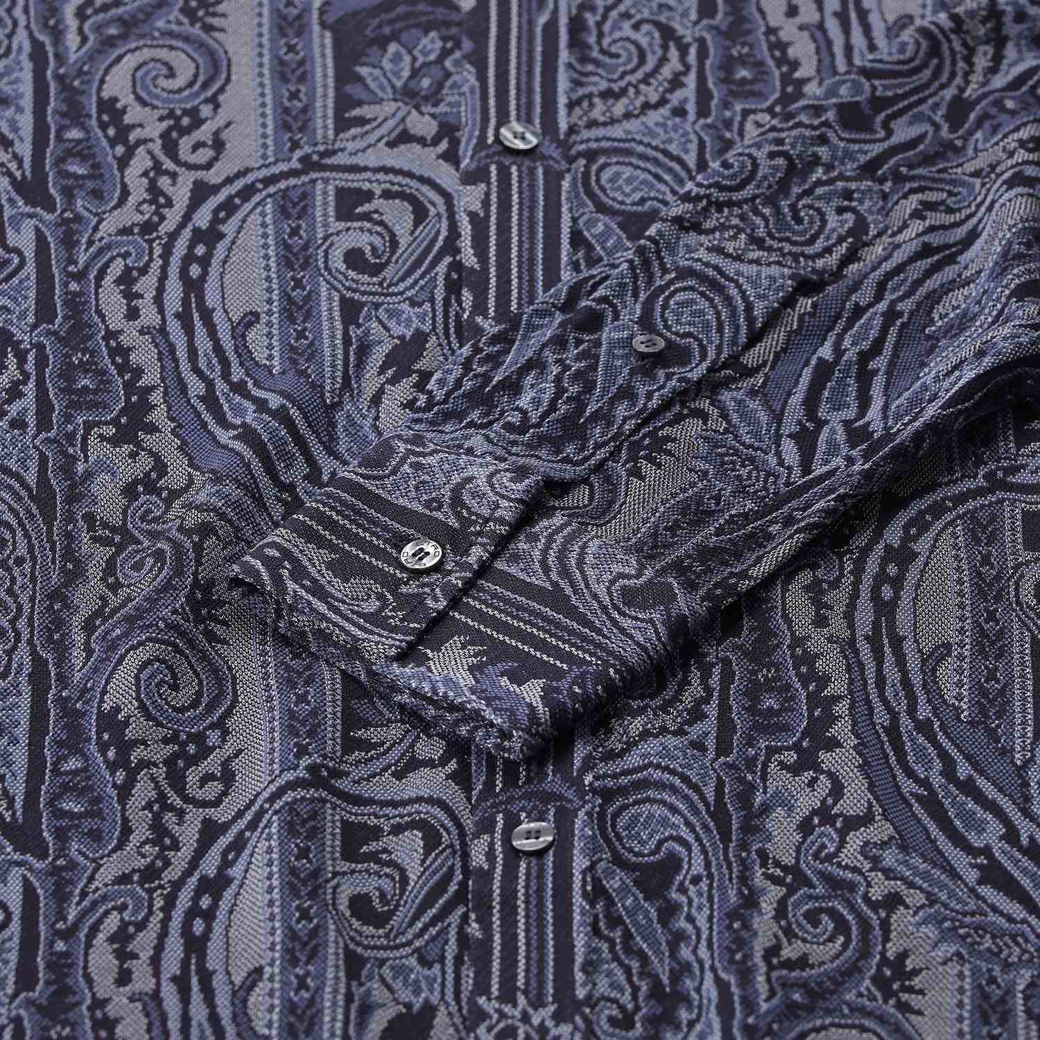 Dieses Hemd mit dem detailreichen Paisley-Muster verleiht dem Modell eine künstlerische Tiefe und eine unverwechselbare Identität. Klassisch abgerundet durch einen präzisen Kragen und eine durchgehende Knopfleiste, besticht das Hemd durch seine erstklassige Materialqualität und Passform.