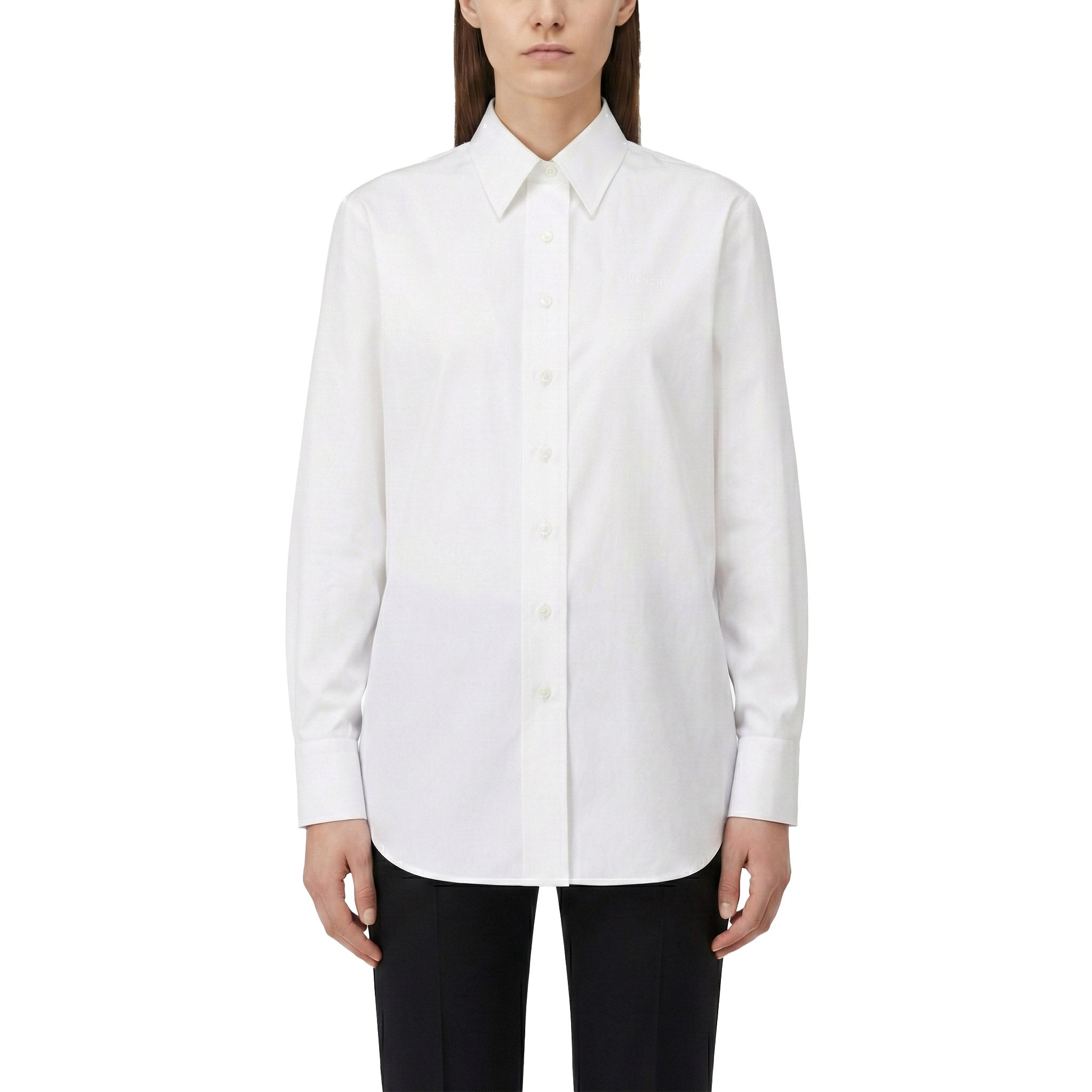 This elegant long-sleeved shirt, crafted from the finest cotton poplin, combines classic style with superior workmanship. The classic collar and buttoned cuffs lend it a timeless sophistication. A discreet, embroidered Givenchy Paris logo on the chest adds a subtle touch of brand recognition. The button closure completes the stylish design. Made in Italy, this shirt guarantees not only exceptional comfort but also superior quality – an essential piece for the discerning fashion enthusiast.