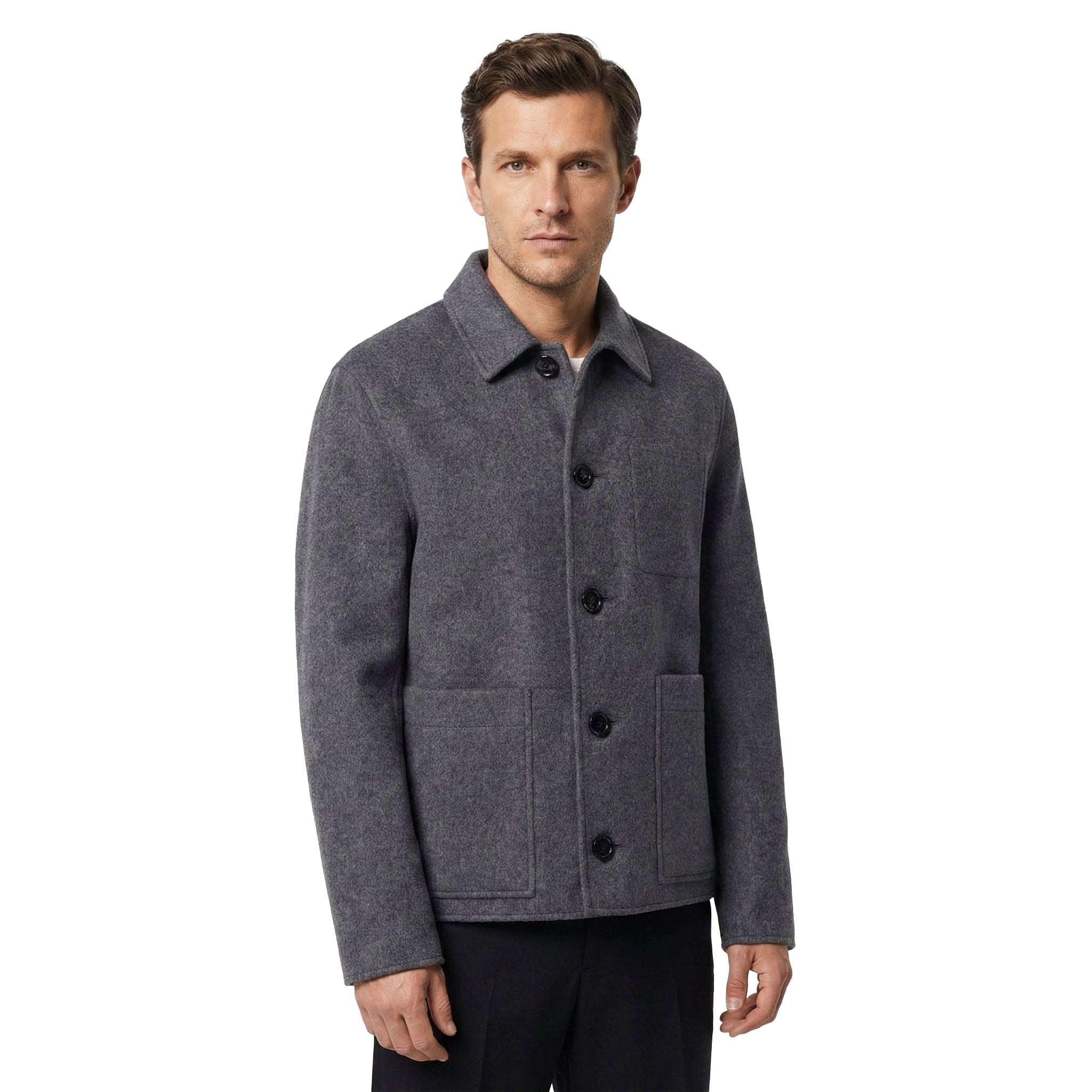 This short coat, crafted from a soft wool and cashmere blend, offers luxurious comfort and stylish warmth. The classic button closure and discreet front pockets accentuate the clean design, while a small logo detail on the back adds a subtle touch.