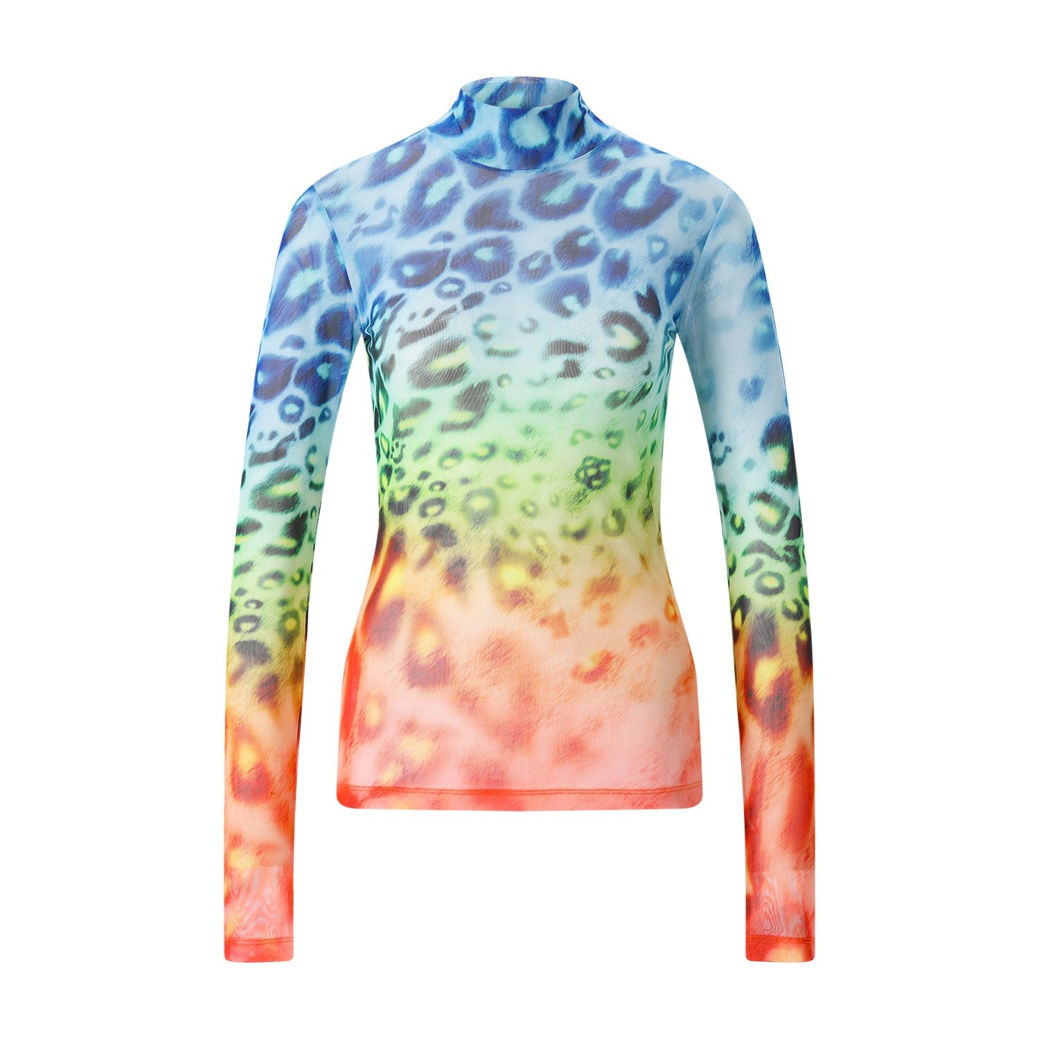 Setzen Sie ein modisches Statement mit diesem exklusiven Langarmshirt. Der transparente Mesh-Stoff schmiegt sich wie eine zweite Haut an und verleiht Ihrem Outfit eine aufregende Tiefe. Das absolute Highlight ist das ikonische Leopardenmuster, das durch einen kunstvollen Farbverlauf modern interpretiert wird – ein fließendes Spiel der Nuancen, das für eine besonders hochwertige Optik sorgt. Made in Portugal.