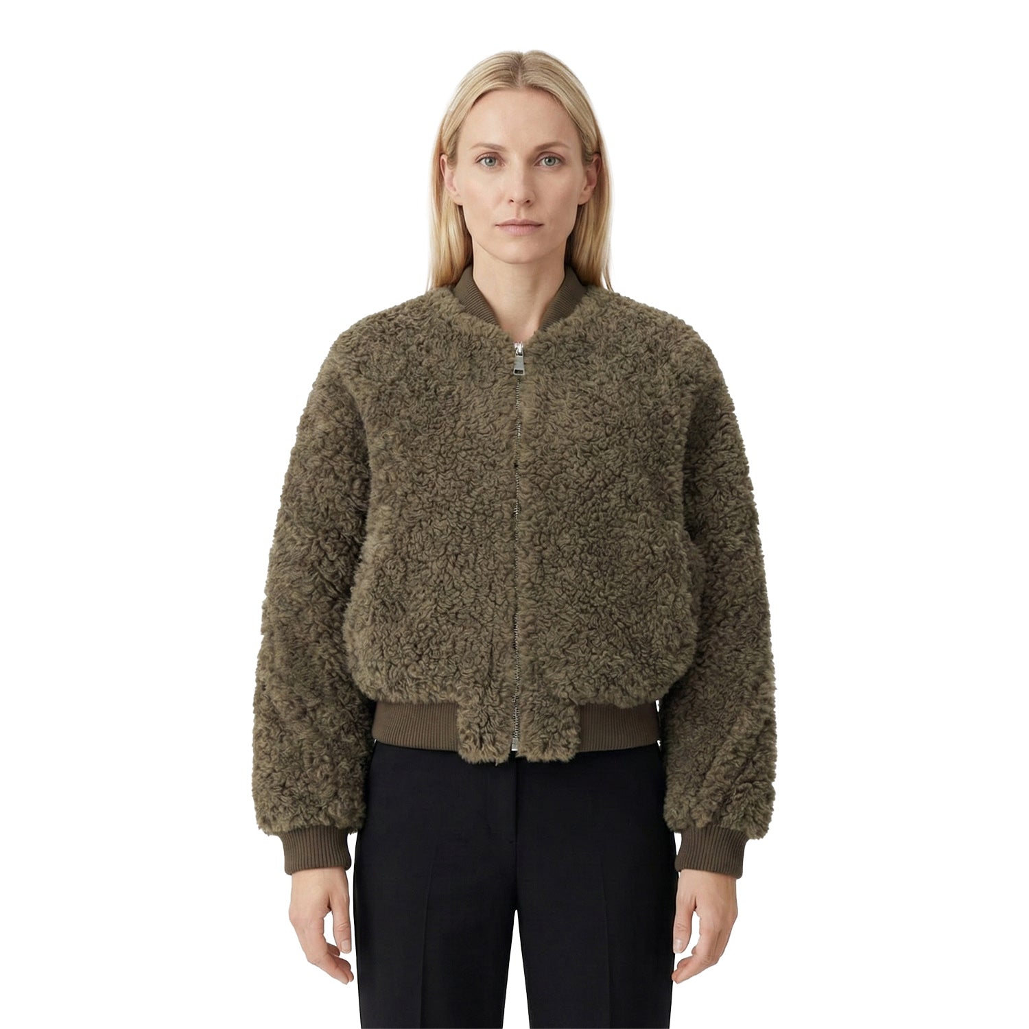 This teddy wool bomber jacket impresses with its oversized fit and slightly cropped cut for a modern look. The zipper, side pockets, and ribbed cuffs complete the design in a functional and stylish way.