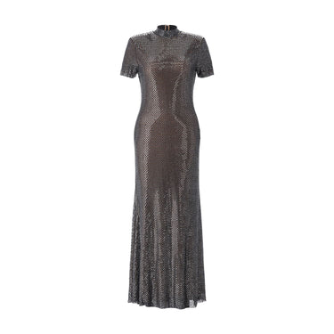 Dieses Midikleid aus Mesh sorgt für einen elektrisierenden Auftritt. Die mühelose T-Shirt-Silhouette umspielt sanft die Figur, während funkelnder Strass in einem All-over-Design für maximalen Glanz sorgen. Mit Stretch-Material, komplettem Futter und verdecktem Reißverschluss bietet es Komfort und eine perfekte Passform.