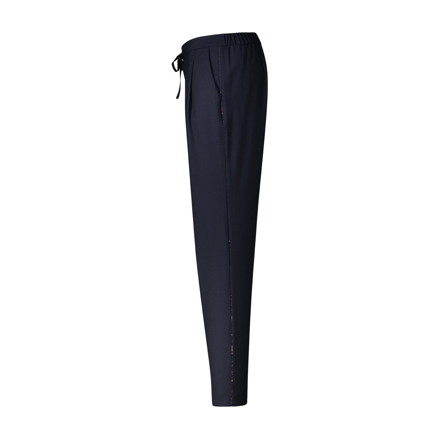 Diese Stoffhose aus einem leichten Woll-Mix bietet Ihnen ein hervorragendes Tragegefühl. Für eine optimale Passform sorgt der semi-elastische Bund mit praktischem Kordelzug. Der Clou: Ein dezenter, seitlicher Streifen, der mit funkelnden Strass-Applikationen veredelt ist. Ausgestattet mit seitlichen Taschen, wird diese Hose zu einem stilvollen Hingucker, der sowohl lässig als auch elegant kombiniert werden kann.
