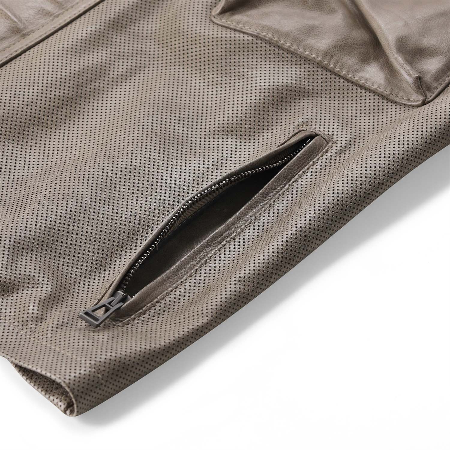 Diese Lederjacke präsentiert sich in einer exklusiven Ausführung aus italienischem Kalbsleder. Das markante Design mit perforierter Textur verleiht der Jacke nicht nur eine außergewöhnliche Optik, sondern sorgt auch für eine sommerliche Leichtigkeit. Klassische Details wie der hochschließende Kragen, die charakteristischen Brusttaschen mit Klappe und die zusätzlichen seitlichen Reißverschlusstaschen unterstreichen den authentischen Biker-Stil. Abgerundet wird das Design durch eine Front-Druckknopfleiste und weitenverstellbare Manschetten. Ein in Italien gefertigtes Meisterwerk, das Luxus und Heritage perfekt vereint.