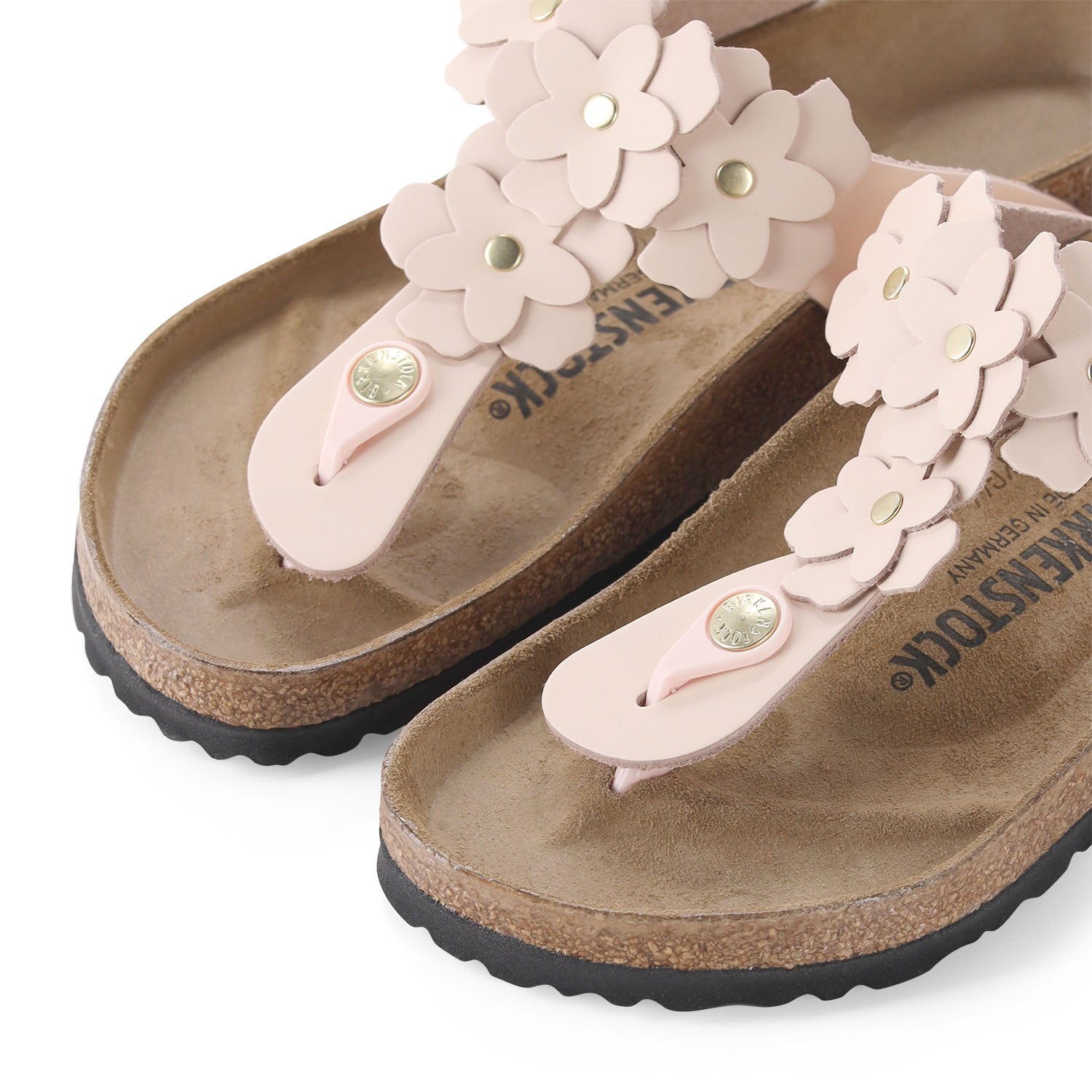 Die Sandalen Gizeh präsentieren sich als echter Klassiker und stilvolle Allrounder, die optimalen Halt mit einem minimalistischen, modischen Design verbinden. In dieser besonders femininen Ausführung ist die elegante Zehentrenner-Sandale mit filigranen Blumen-Applikationen verziert. Das Obermaterial besteht aus hochwertigem Anilinleder, das durch einen speziellen Glanz besticht. Ausgestattet mit einem anatomisch geformten Kork-Latex-Fußbett, einem Futter aus Veloursleder und einer dämpfenden EVA-Sohle, bietet das in Deutschland gefertigte Modell höchsten Komfort. Ein individuell verstellbare Metallschnalle am Zehensteg sorgt zudem für eine perfekte Passform.