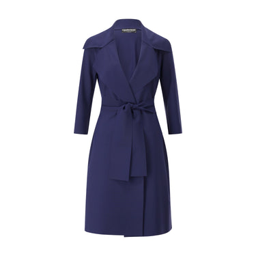 This long jacket, crafted from lightweight, smooth fabric, impresses with its elegant simplicity and flowing silhouette. It can be tailored with a tie belt and offers added comfort thanks to practical side pockets. Made in Italy.