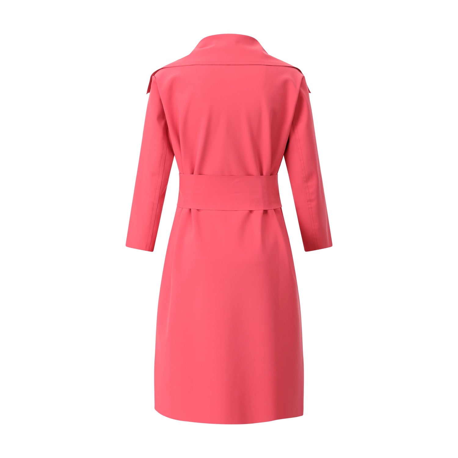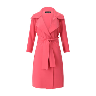 This long jacket, crafted from lightweight, smooth fabric, impresses with its elegant simplicity and flowing silhouette. It can be tailored with a tie belt and offers added comfort thanks to practical side pockets. Made in Italy.