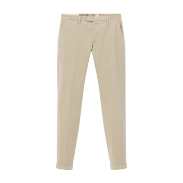 Diese Slim-Fit Chinohose aus hochwertigem Baumwollmix überzeugt durch ihr klares Design. Der Bund schließt sicher mit einem Reißverschluss und zwei Knöpfen. Seitliche Eingriffstaschen bieten praktischen Komfort. Die Gesäßtaschen sind zugenäht, um eine besonders glatte Silhouette zu garantieren. Diese in Italien gefertigte Hose vereint Qualität mit zeitlosem Stil.