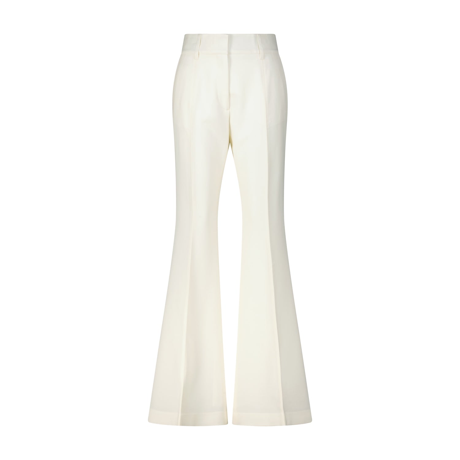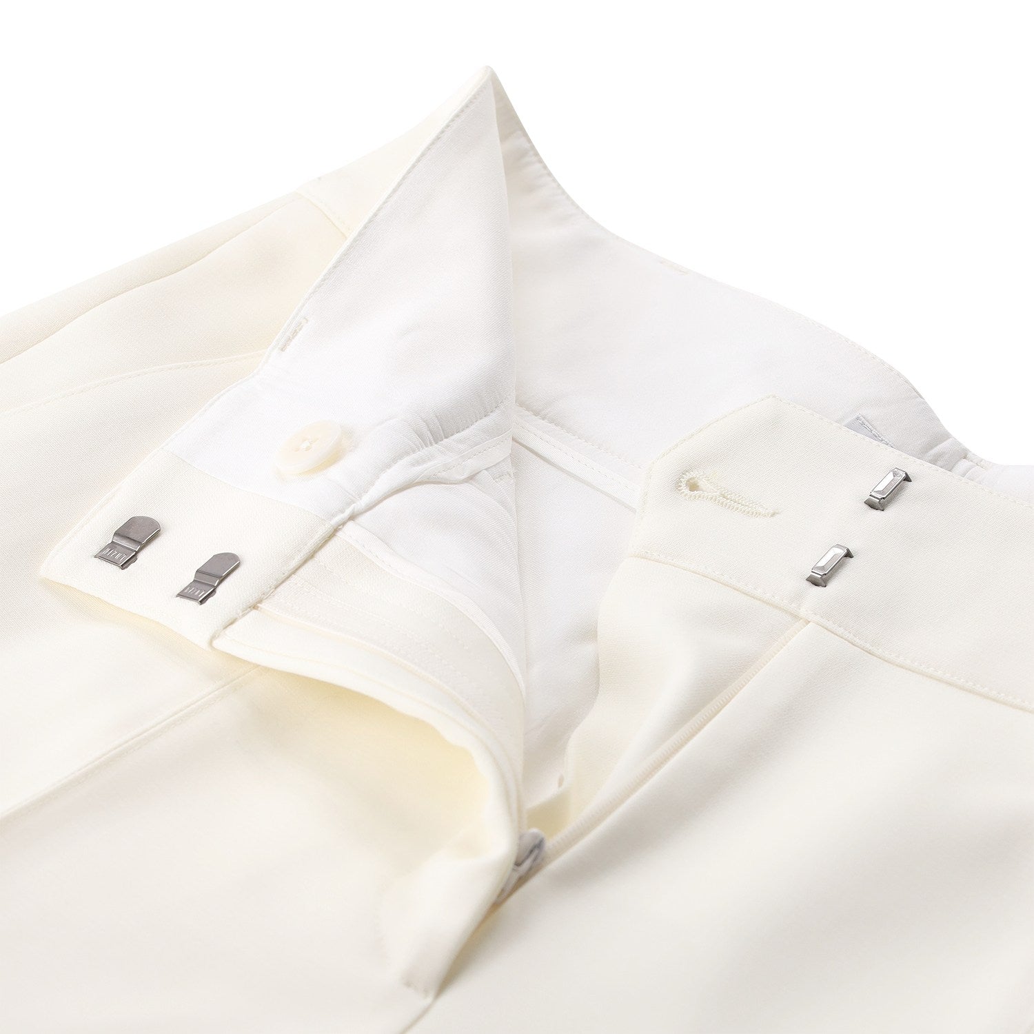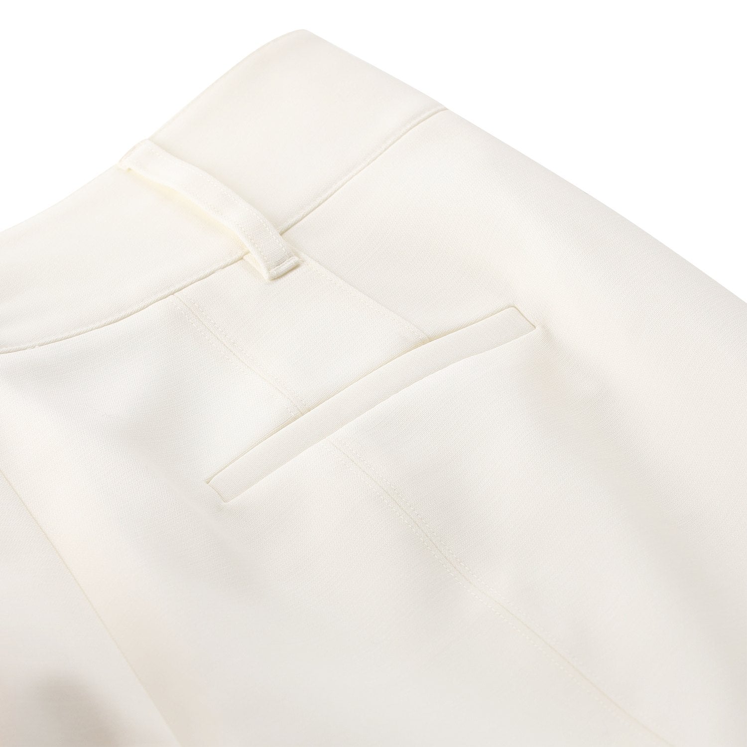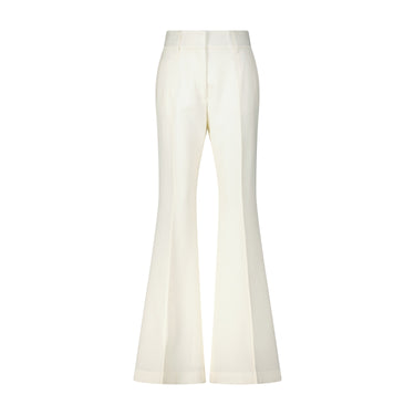 These trousers define a modern, effortlessly elegant silhouette: relaxed, with a soft drape and natural movement. Precise seam details at the front and back visually elongate the leg and create a gentle, subtle flare at the ankle. Crafted from pure virgin wool, the trousers offer a luxurious feel and a sophisticated drape. The high waist, side pockets, and a piped back pocket add stylish, functional touches. Made in Italy.