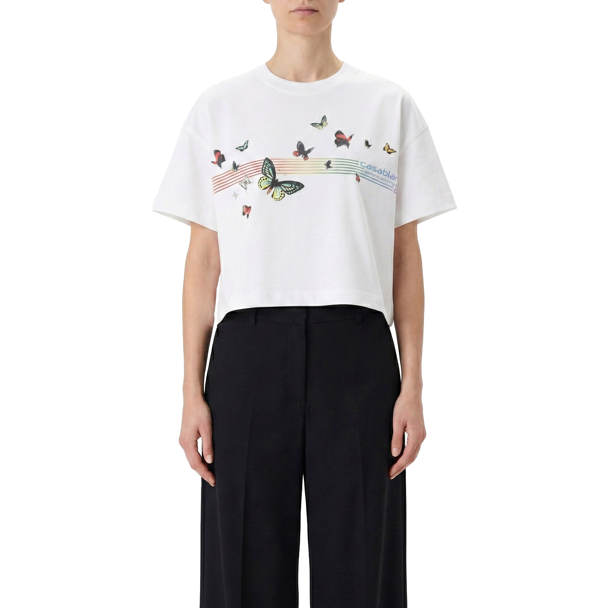 Dieses T-Shirt ist das perfekte Upgrade für Ihre Streetwear-Garderobe. Durch seinen kurzen, weiten Schnitt kreiert es eine moderne Silhouette. Das optische Highlight ist der kunstvolle Schmetterlings-Print, der zusammen mit dem exklusiven Logo für einen verspielten und zugleich coolen Look sorgt. Gefertigt aus Bio-Baumwolle in Portugal, bietet es Ihnen nicht nur erstklassige Qualität, sondern auch ein federleichtes Tragegefühl bei jedem Schritt.