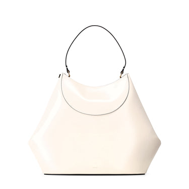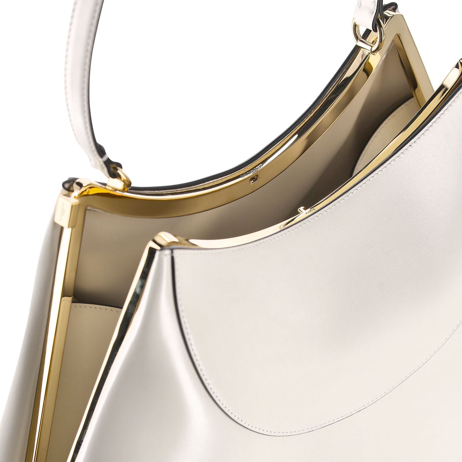 This exquisite bag, crafted from high-quality, naturally grained, and textured leather, captivates with its exceptional design and luxurious craftsmanship. The geometric silhouette, with its gently rounded edges, is artfully sculpted from wood, lending the design a sculptural quality. A functional metal hinge with an engraved logo allows for effortless opening and closing, while the elegant leather handle can be carried by hand or over the shoulder. Hand-stitched, contrasting edges and leather gussets on the sides further emphasize the exquisite craftsmanship. Inside, a main compartment with a flat inner pocket and a fine nappa leather lining offers thoughtful functionality.