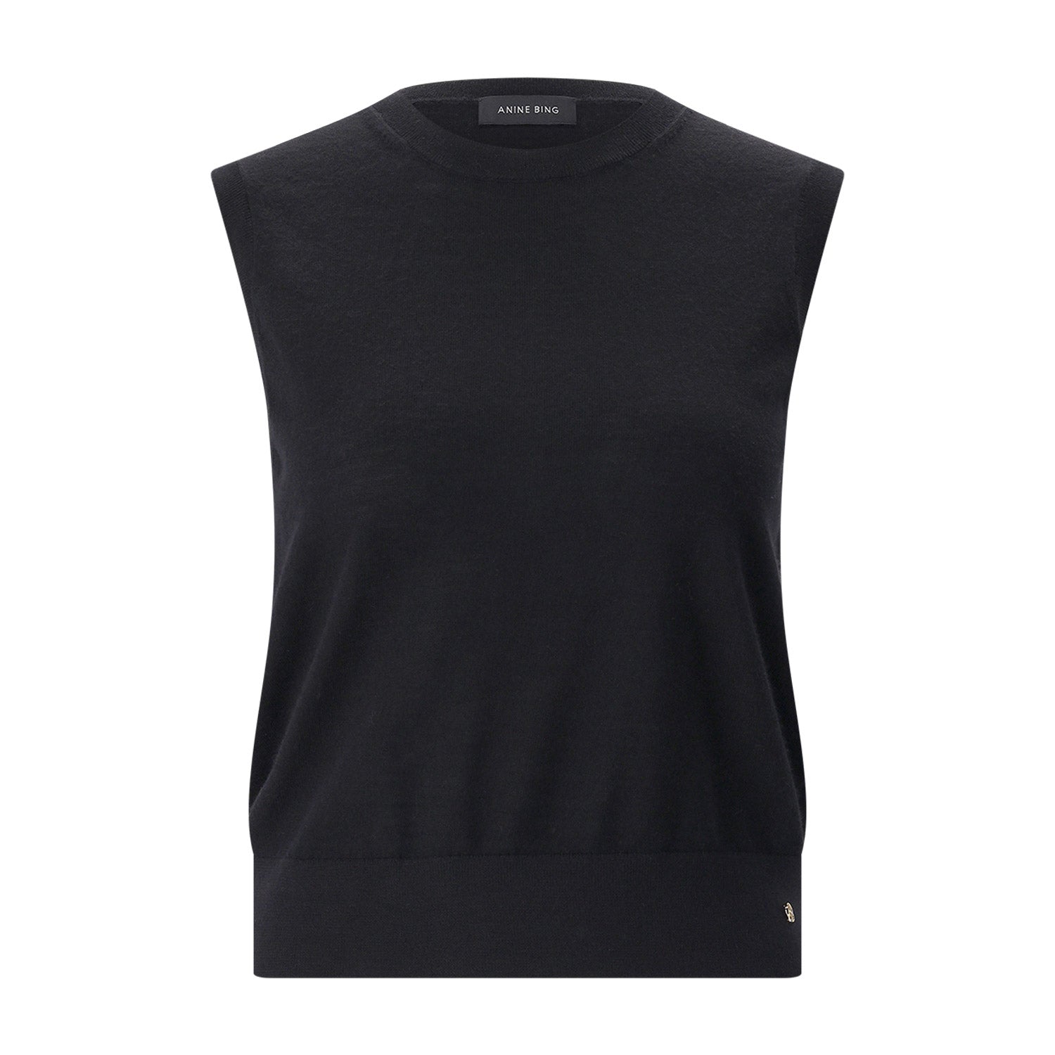 Dieses gestrickte Tanktop aus einem federleichten Merino-Woll-Kaschmir-Mix bietet unvergleichlichen Komfort. Im Slim Fit geschnitten und durch feinen Jersey-Strick charakterisiert, schmiegt es sich elegant an. Klassische Rippdetails an den Abschlüssen und der Rundhals-Ausschnitt machen es zum hochwertigen, stilvollen Essential für Layering-Looks oder als Solist an warmen Tagen.