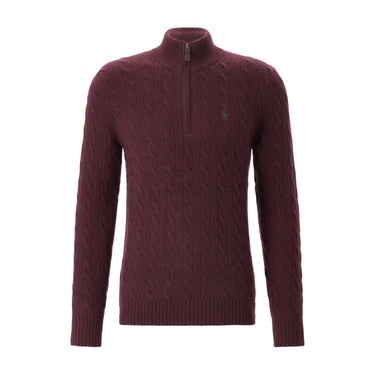 This pullover sweater, crafted from a wool and cashmere blend, impresses with its comfortable feel and stylish look. The classic cable knit gives the design a timeless touch, while the stand-up collar with a zipper offers functional elegance and versatile styling options. A subtly placed, iconic logo embroidery completes the look.